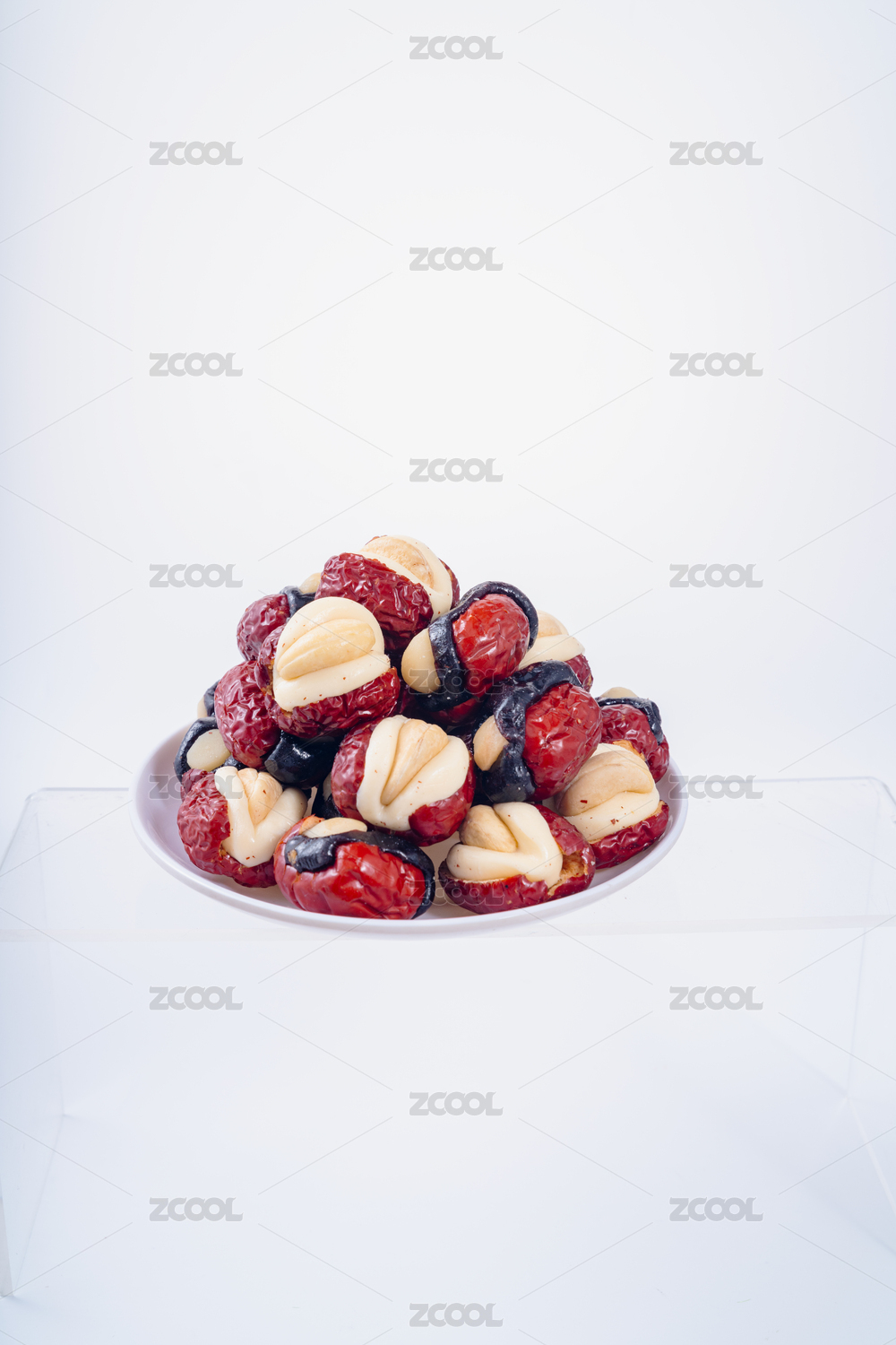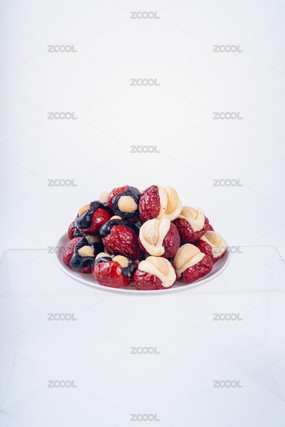白盤子里的奶芙堅(jiān)果夾心紅棗