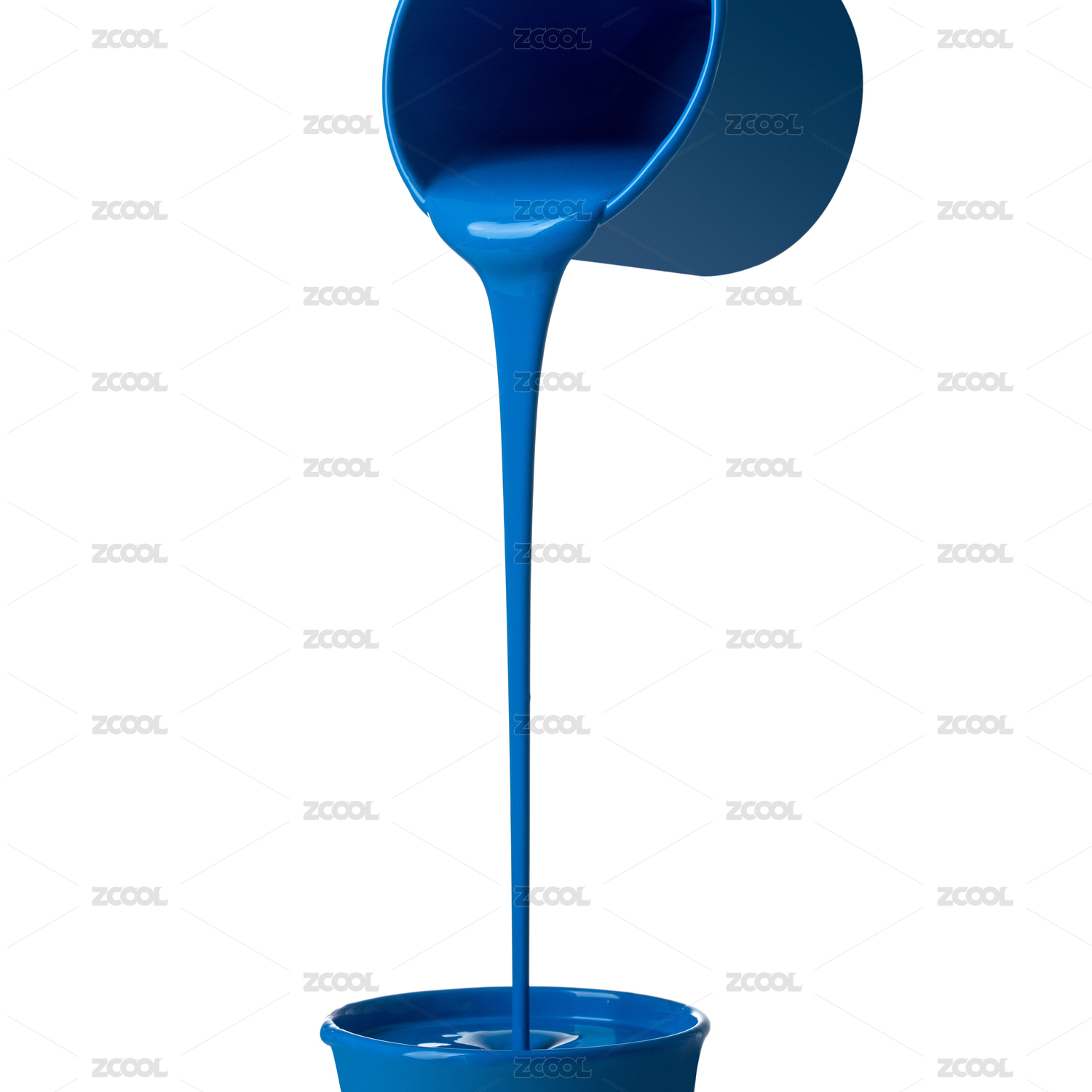 白背景中藍(lán)色油漆從桶里流下的瞬間