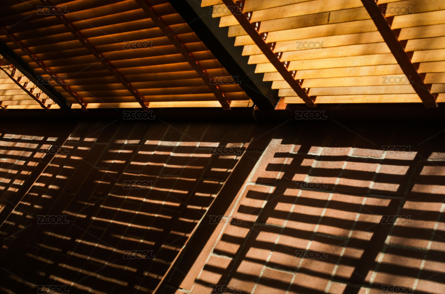 陽光透進(jìn)木質(zhì)建筑內(nèi)部細(xì)節(jié)結(jié)構(gòu)的倒影