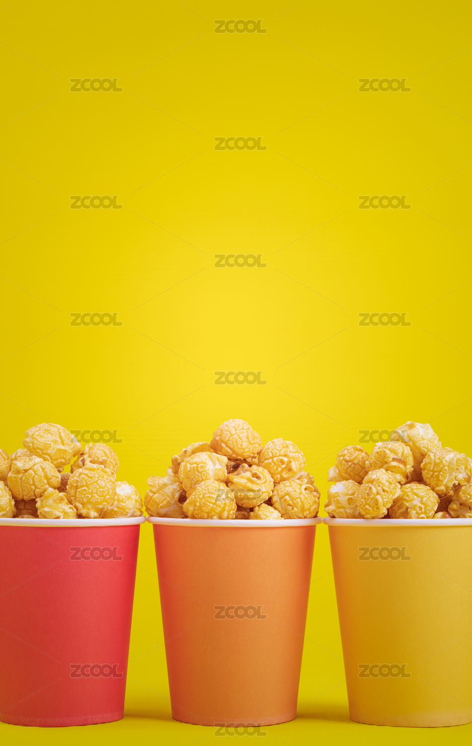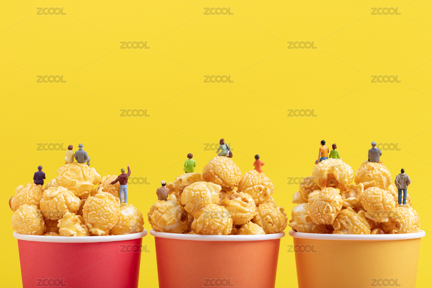 微縮創(chuàng)意彩色紙杯坐在爆米花上的人群暖色