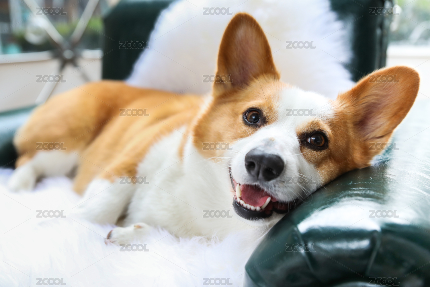 趴在沙發(fā)毯子上的寵物柯基小狗