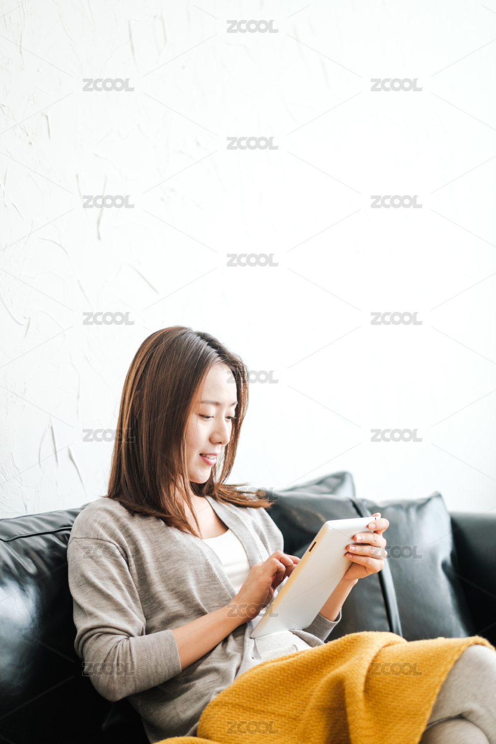漂亮女孩在沙發(fā)蓋毯子看書