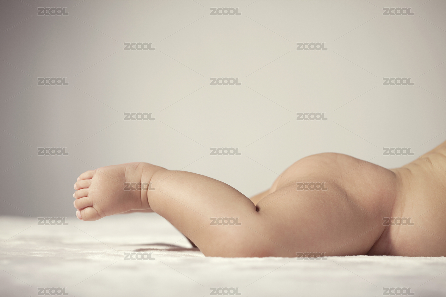 嬰兒寶寶趴在地上身上蓋著柔軟的毯子