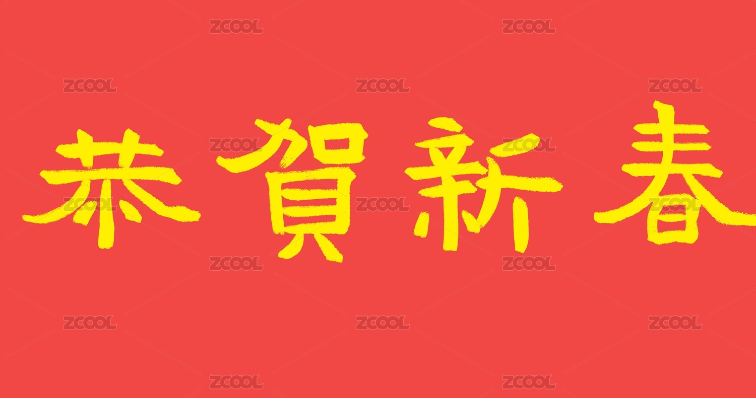恭賀新春-中文手寫漢字書法字體字形中國風