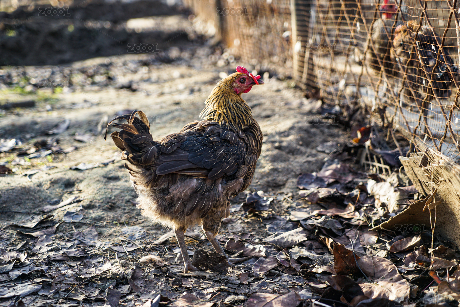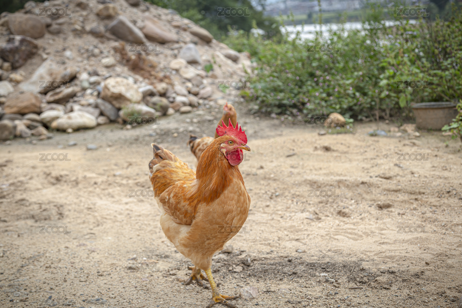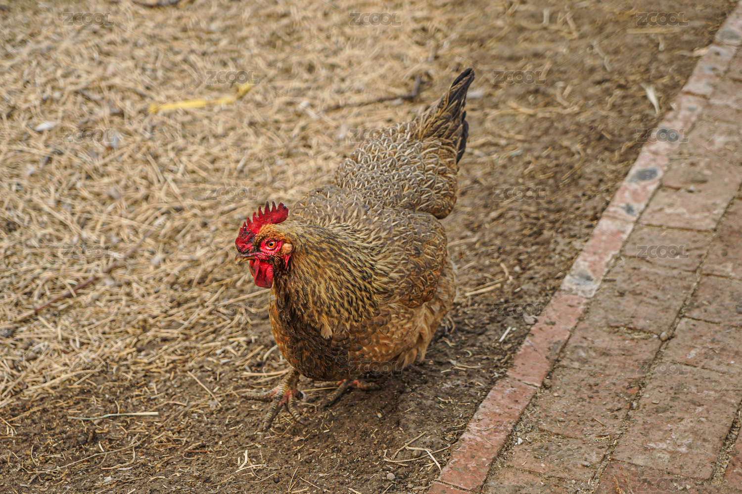 中國雪谷積著厚厚的雪的村莊和一只雞