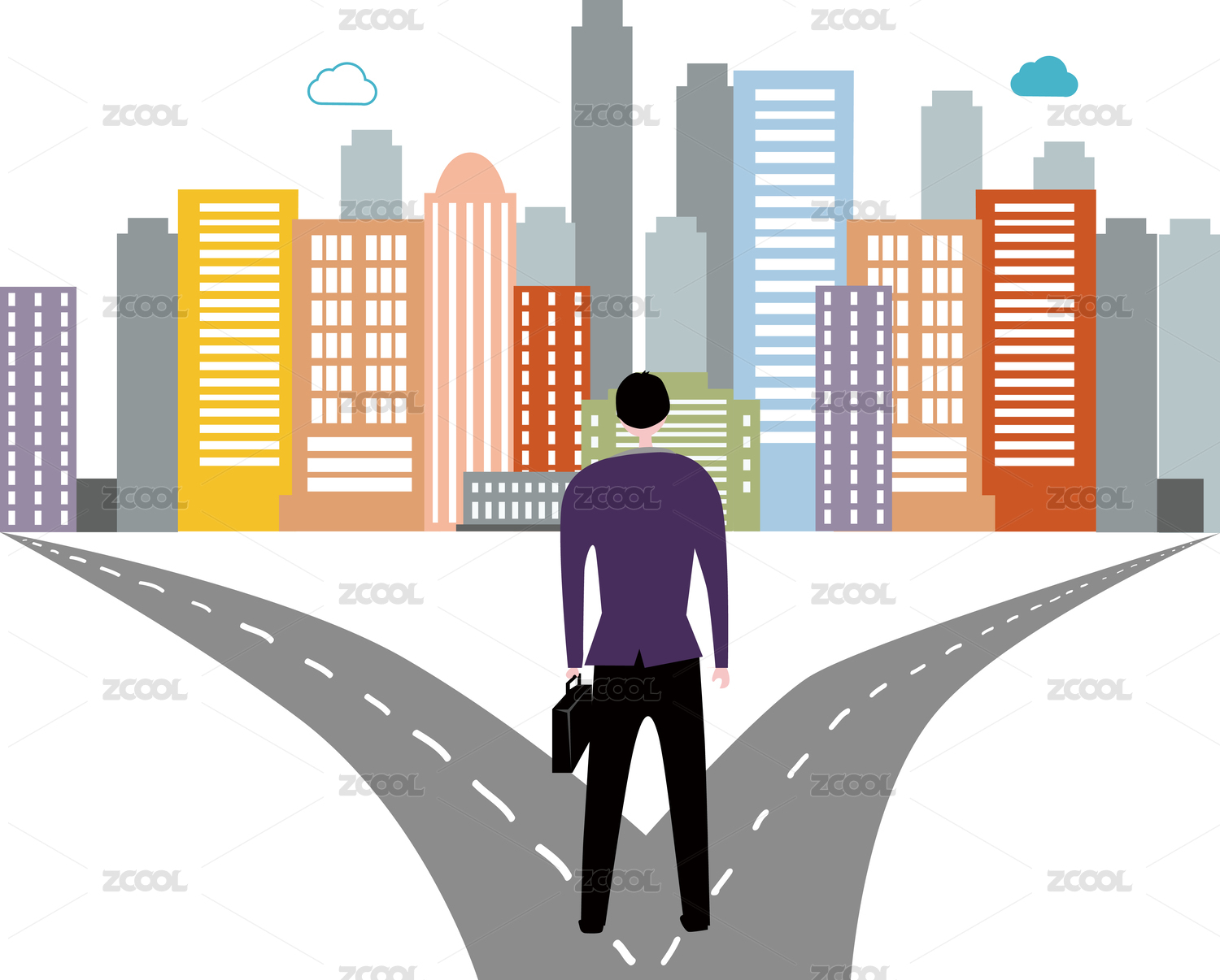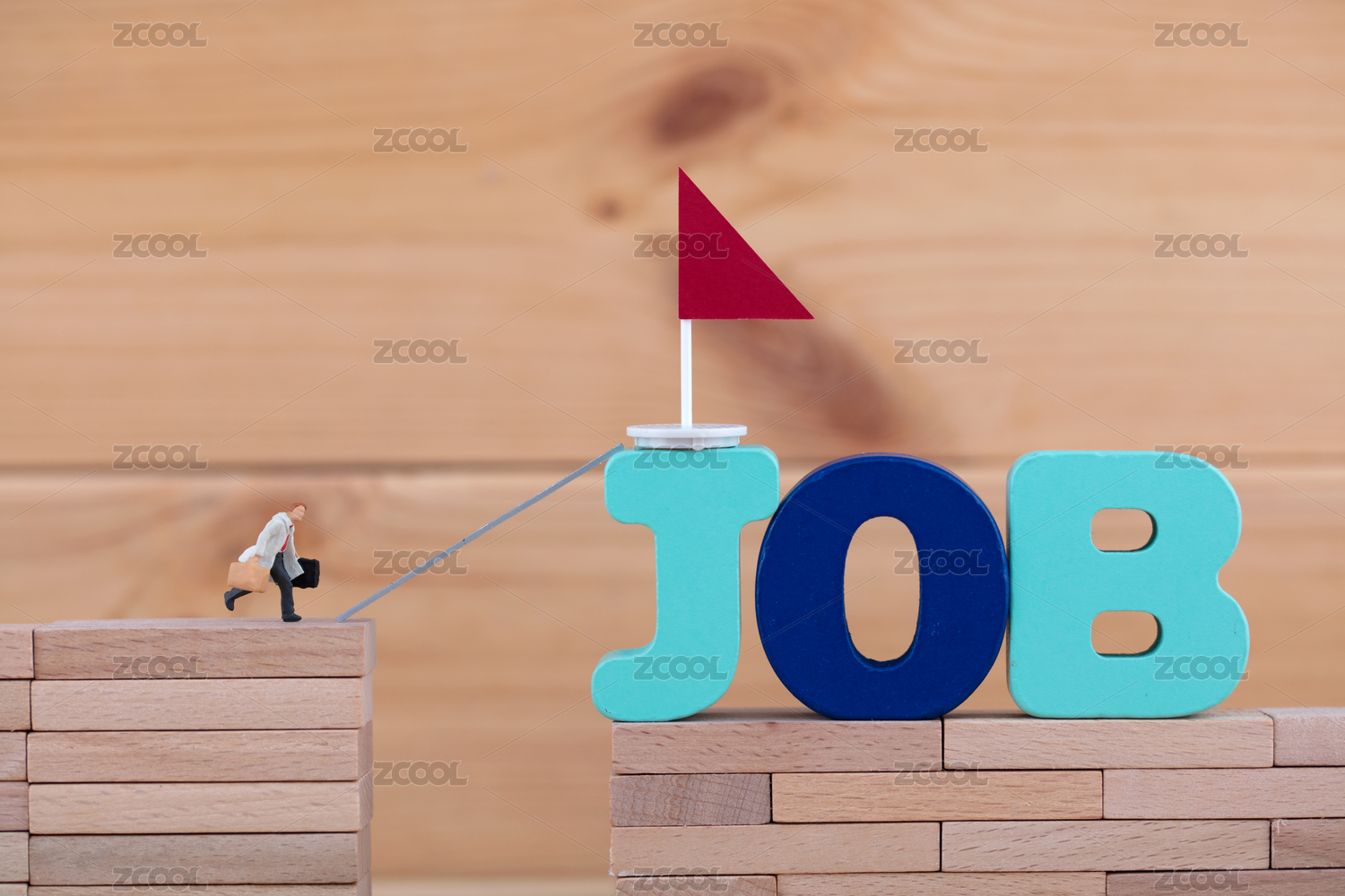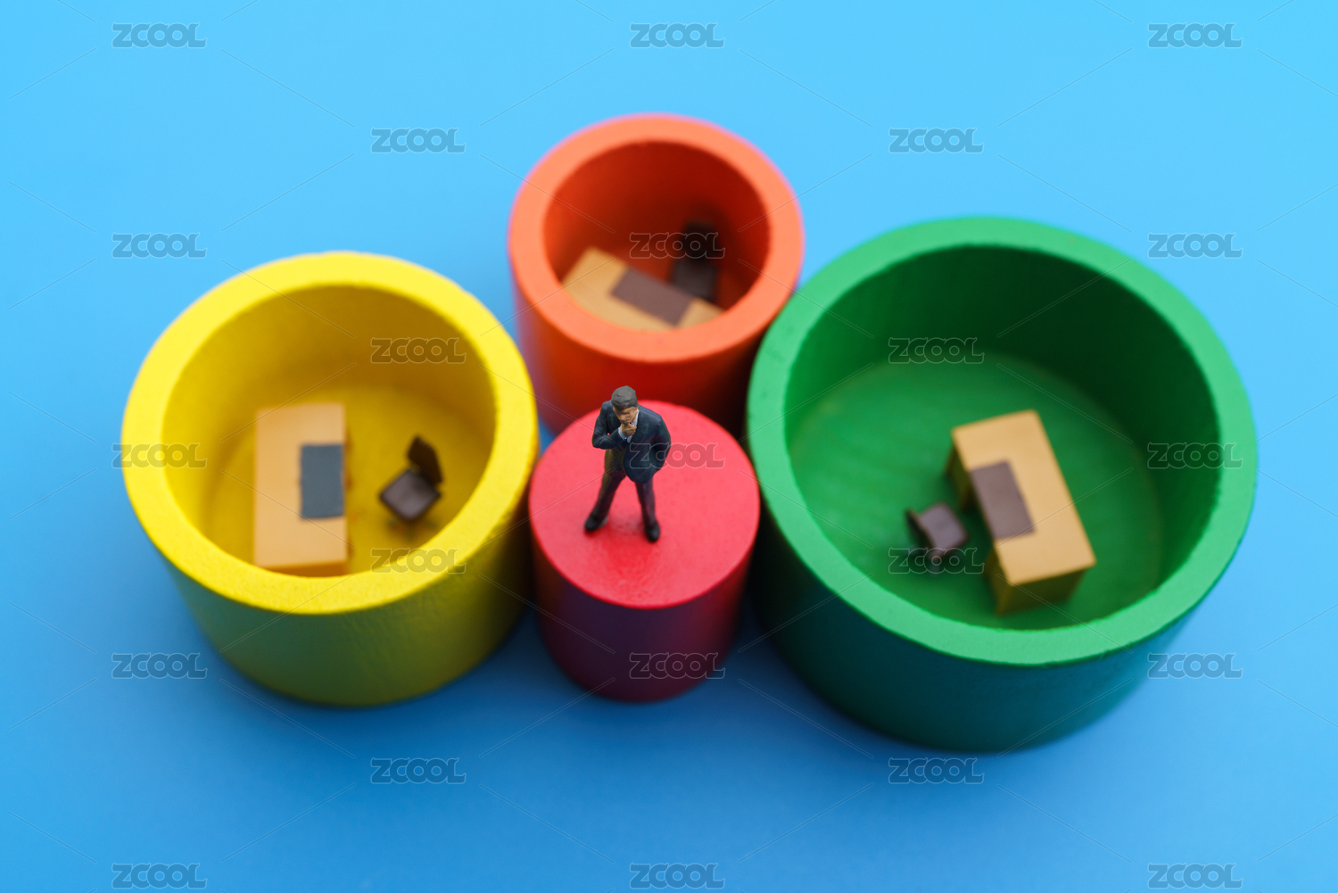 站在彩色積木上準(zhǔn)備跳槽的男士微縮創(chuàng)意圖