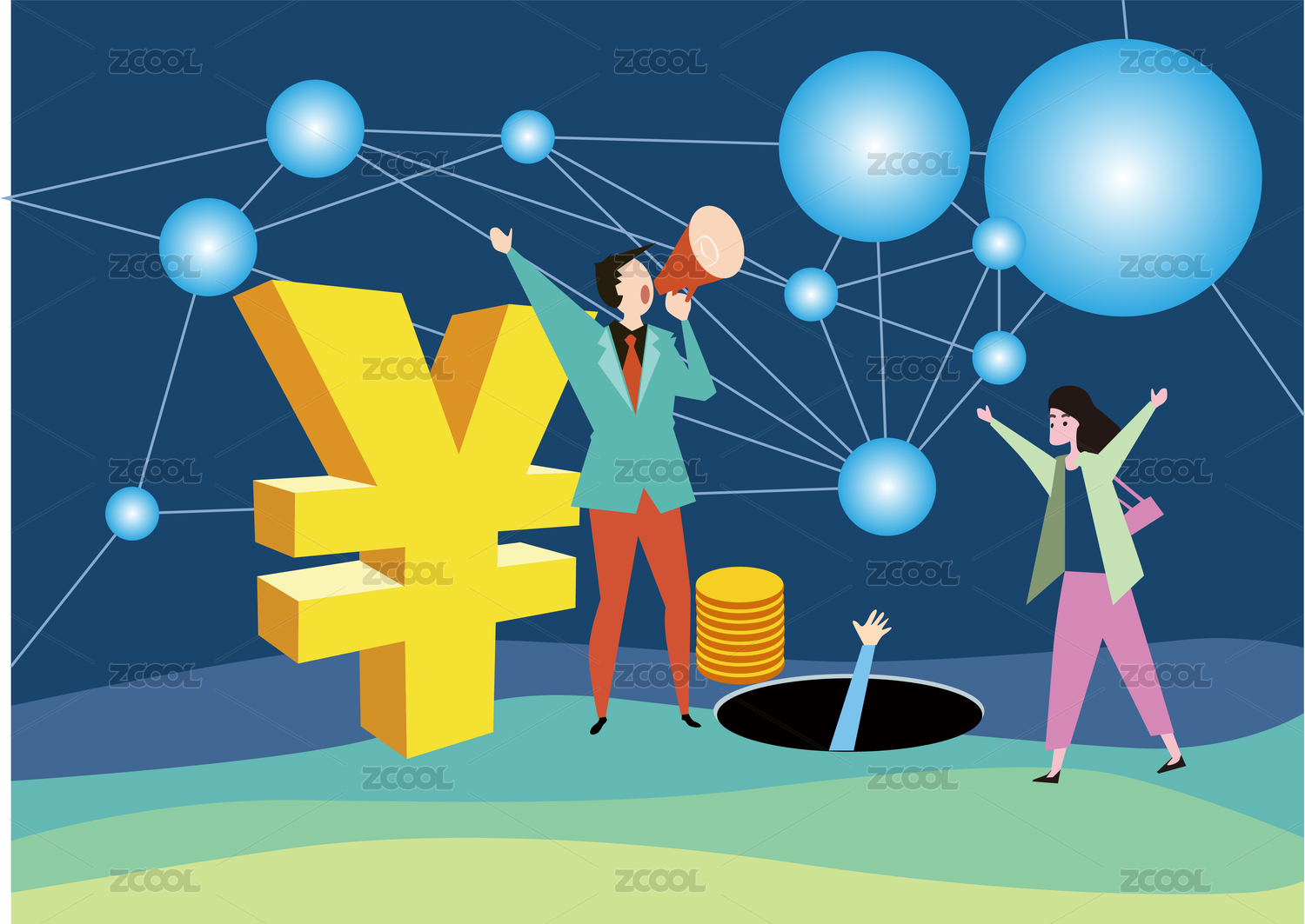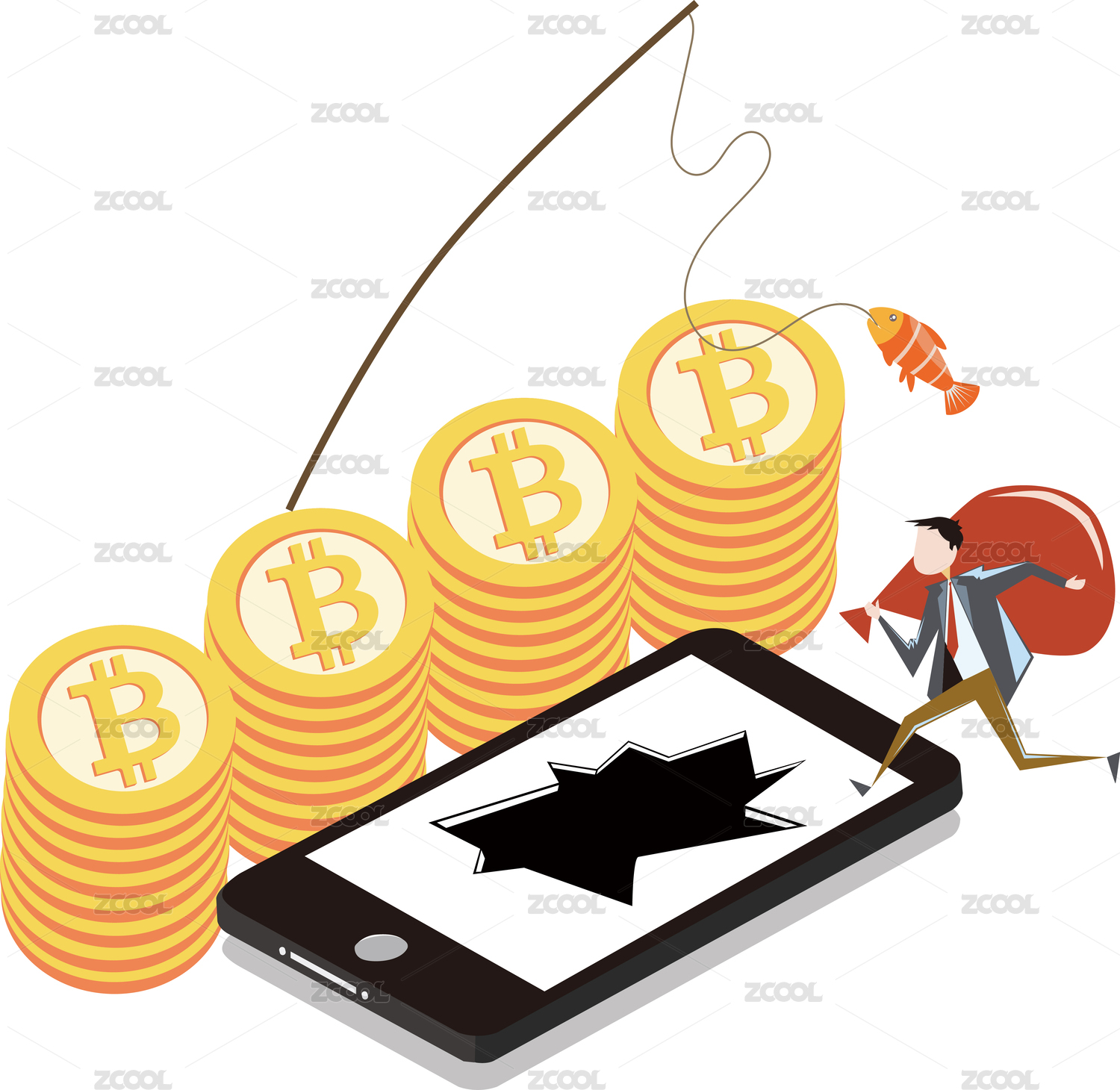 虛擬貨幣詐騙陷阱金融概念插畫