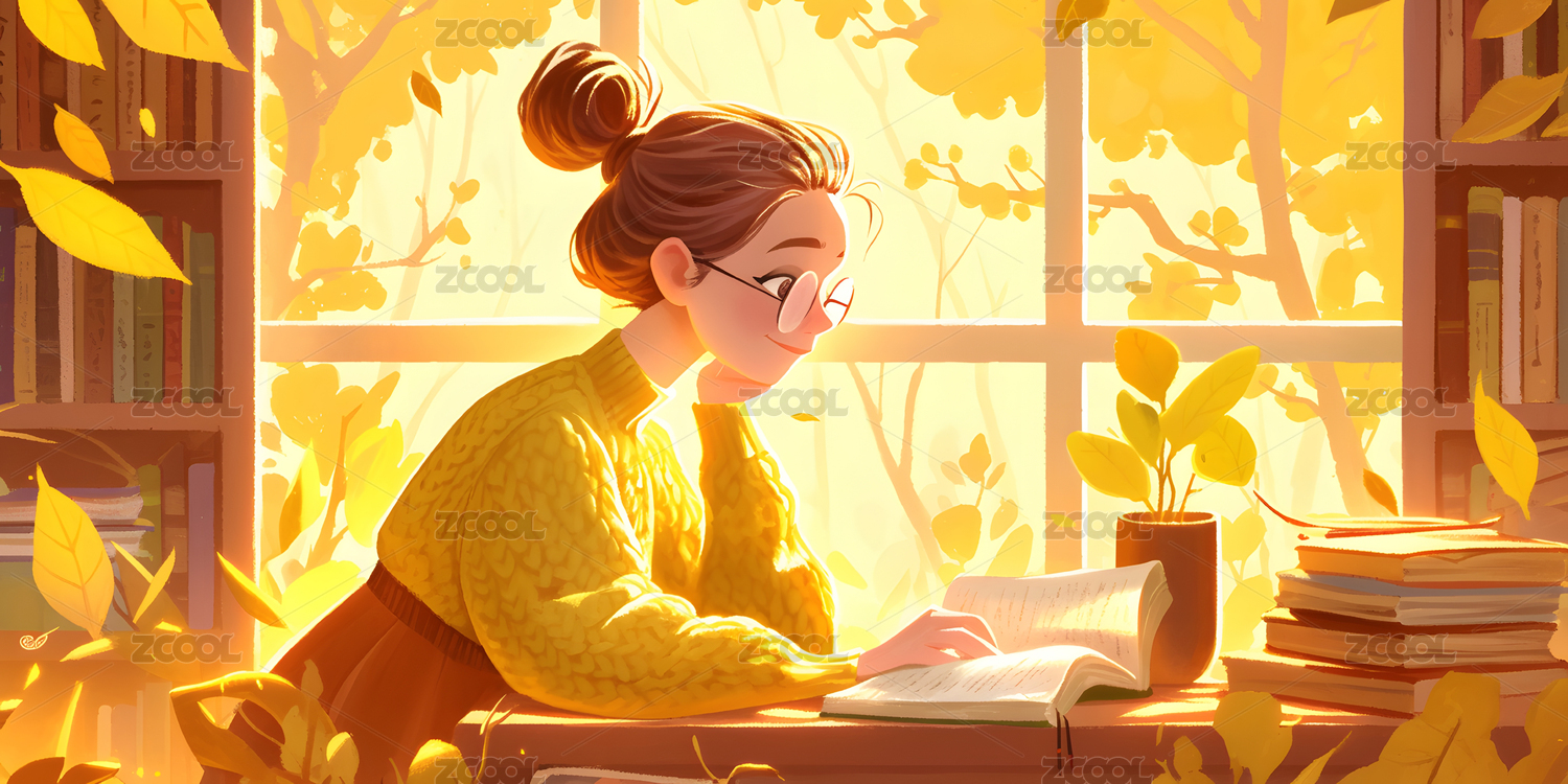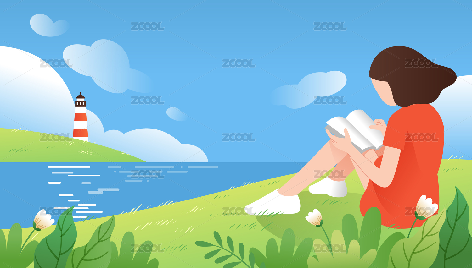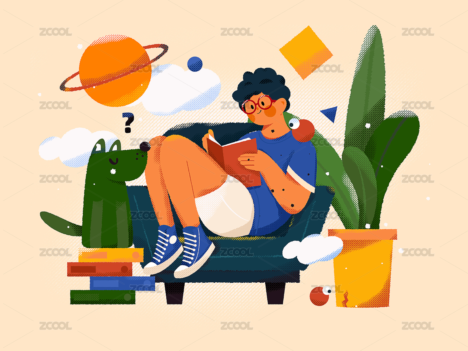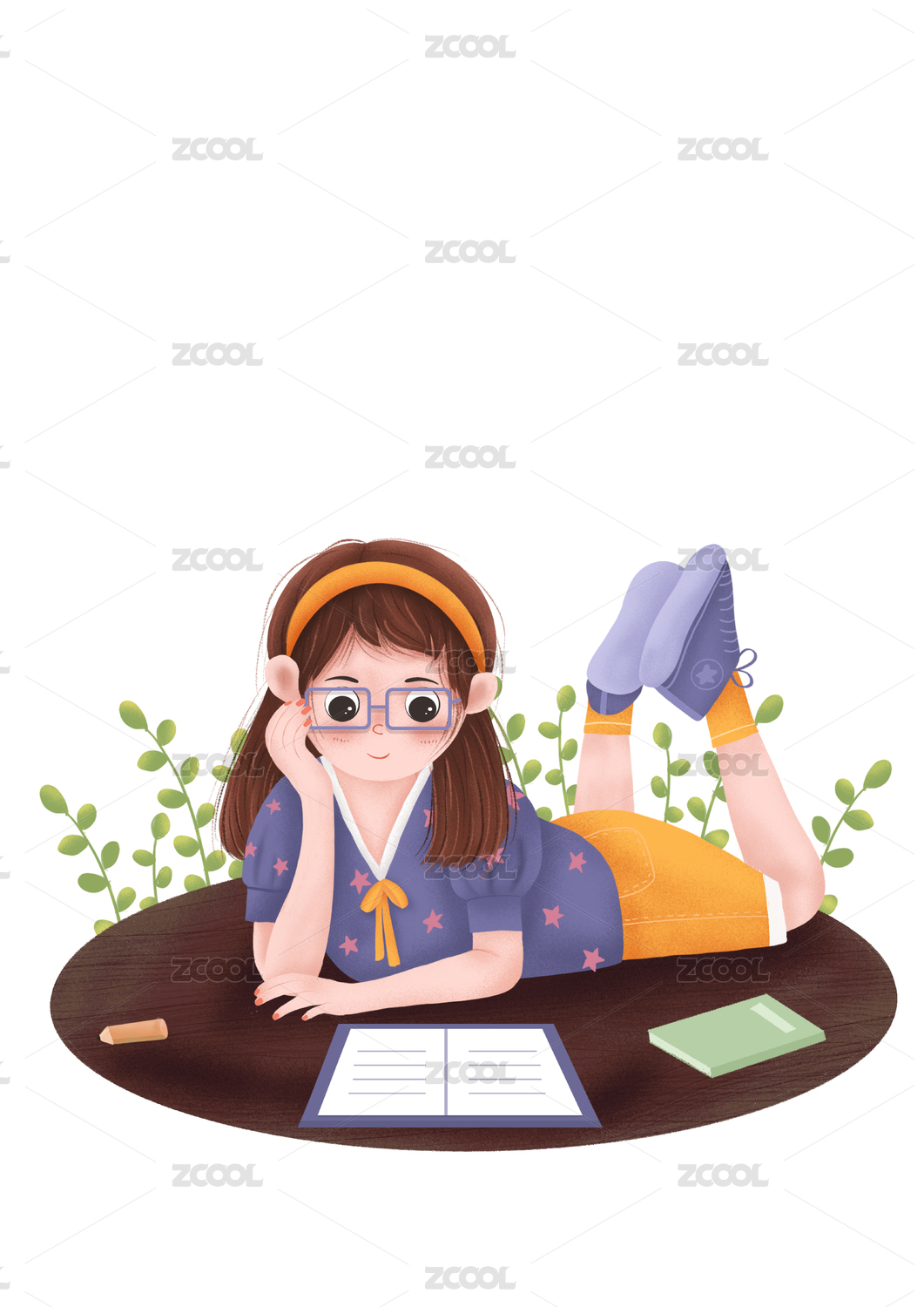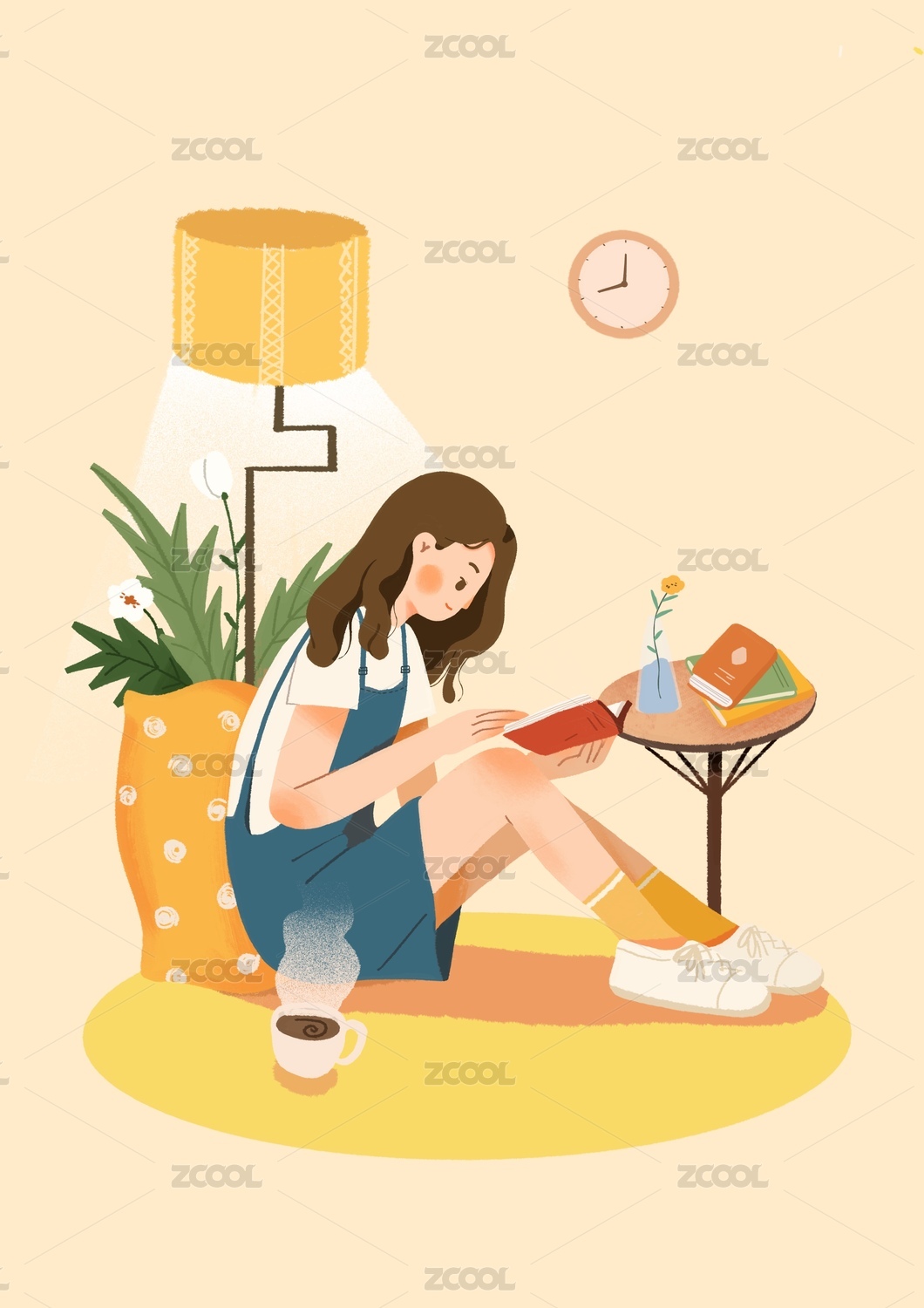 一個長發(fā)女生在學(xué)校宿舍看書原創(chuàng)肌理插畫