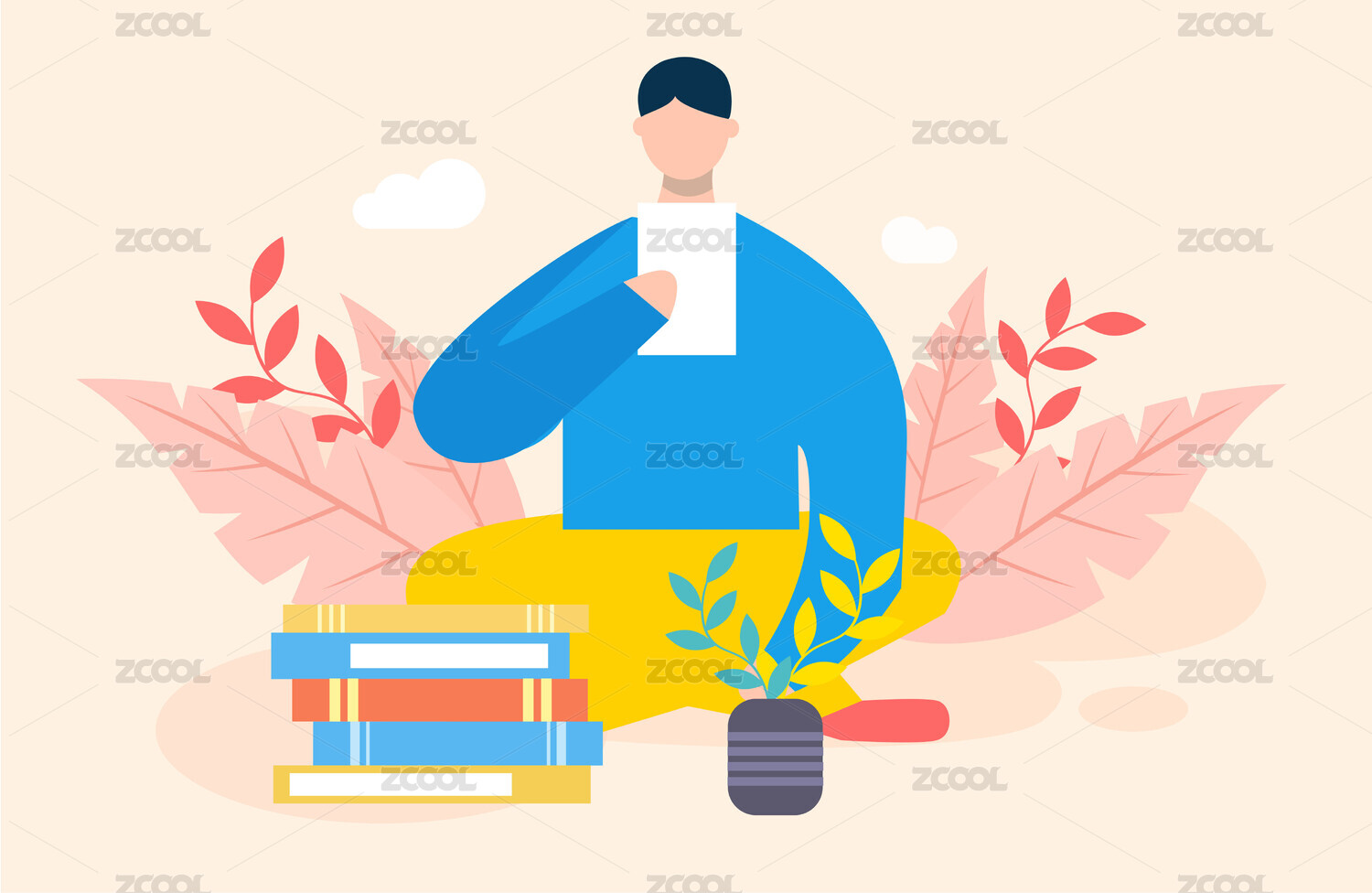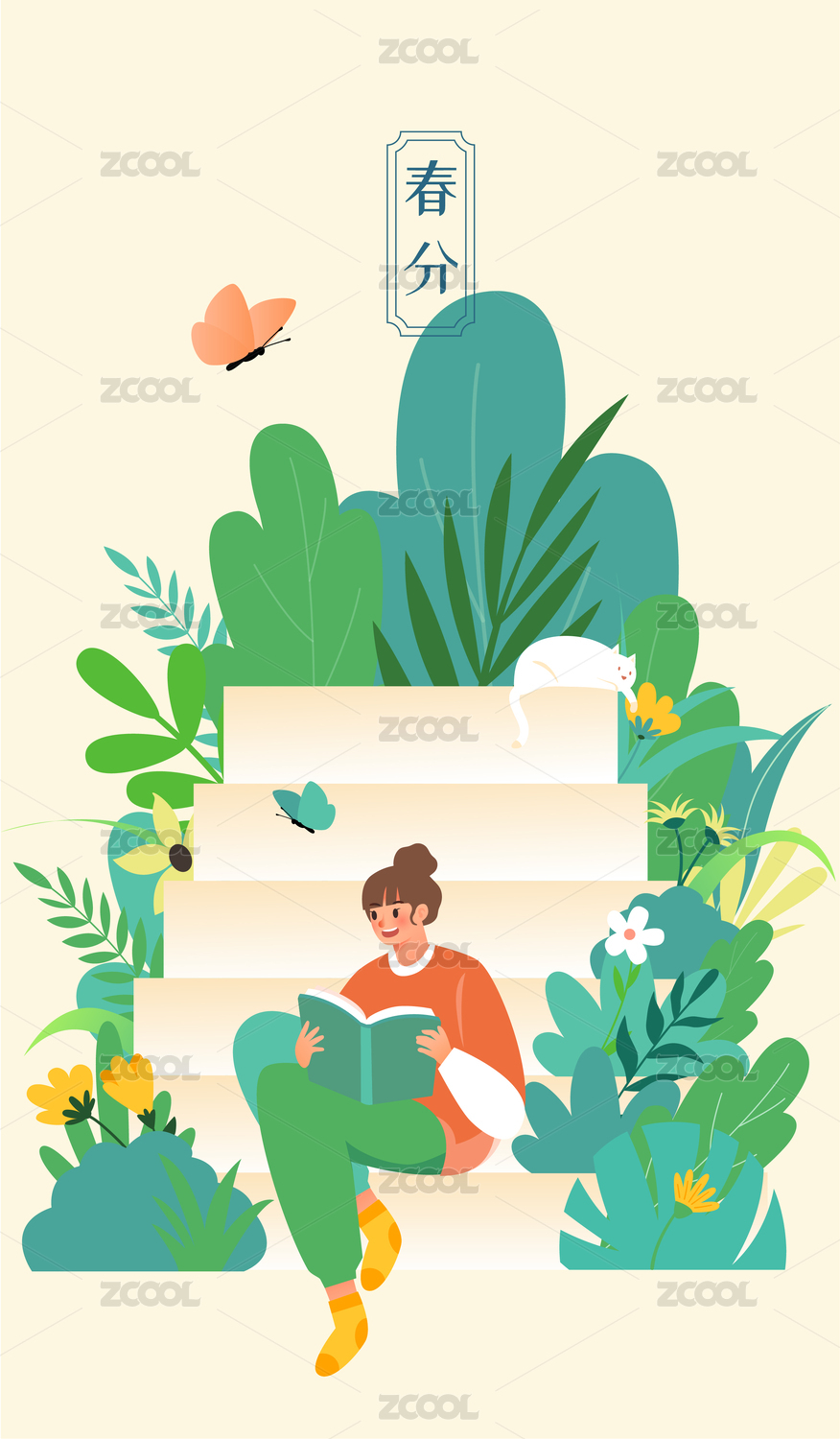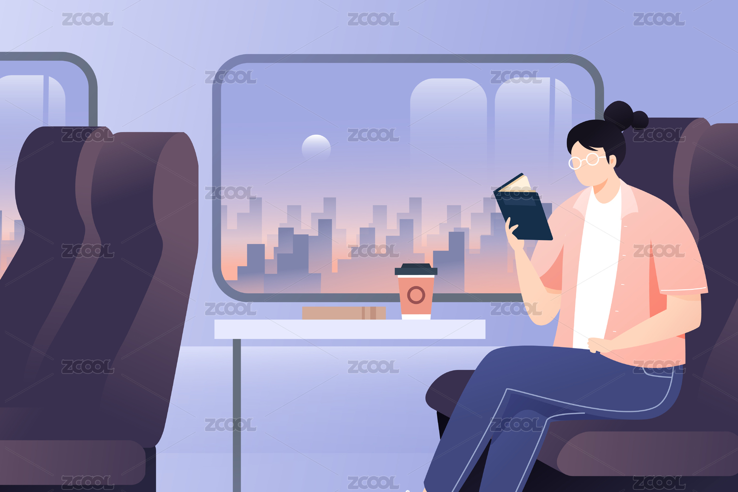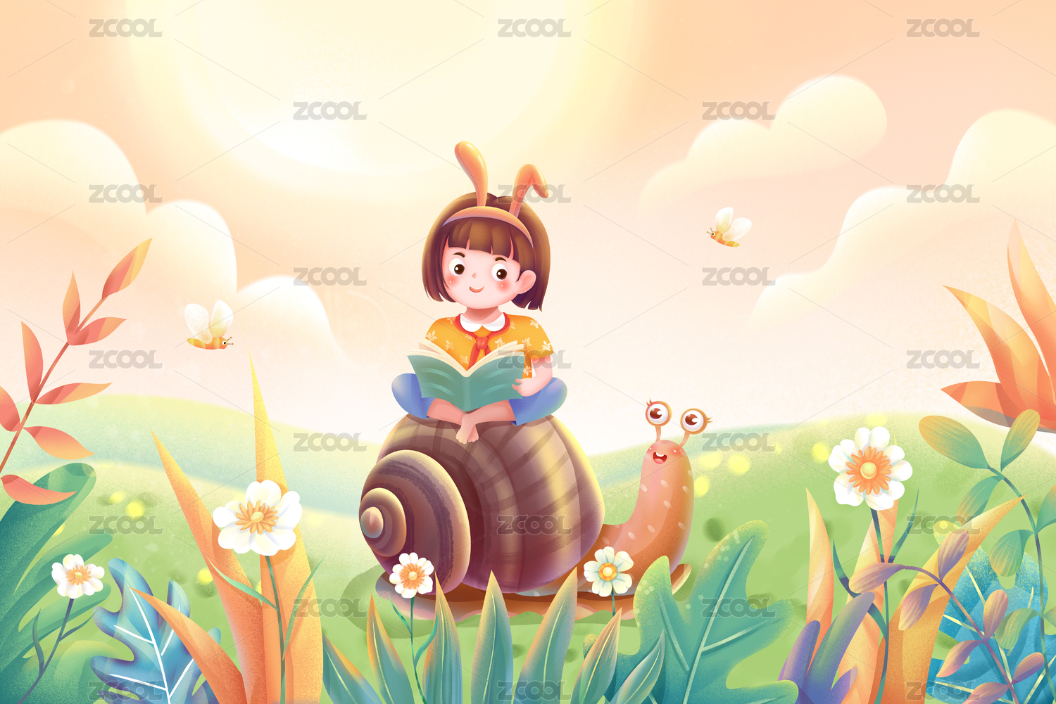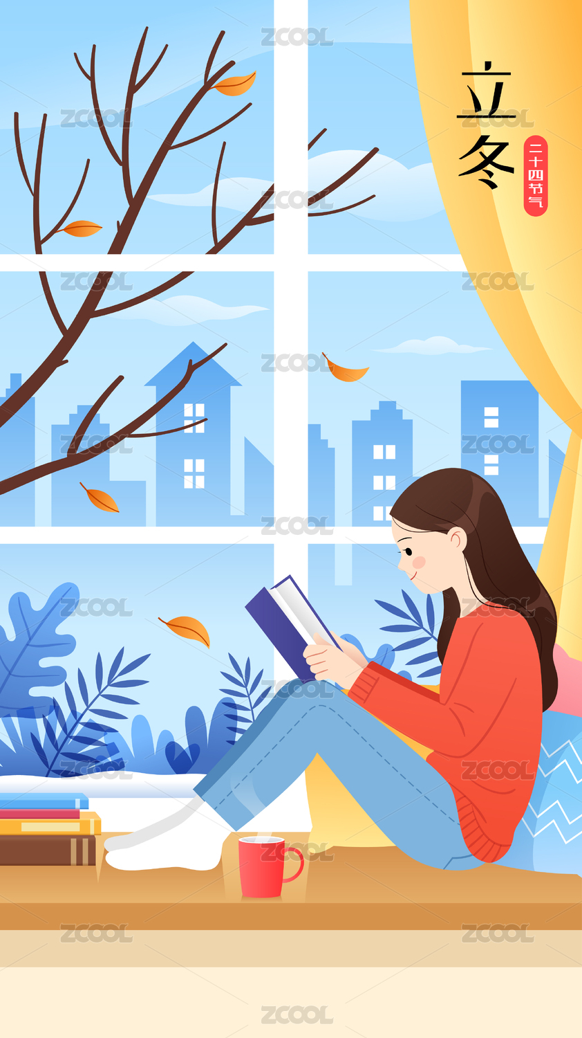 一個長發(fā)女生在學(xué)校宿舍看書原創(chuàng)肌理插畫