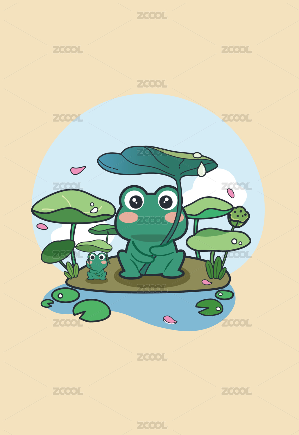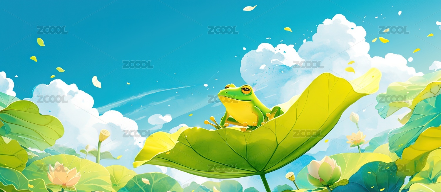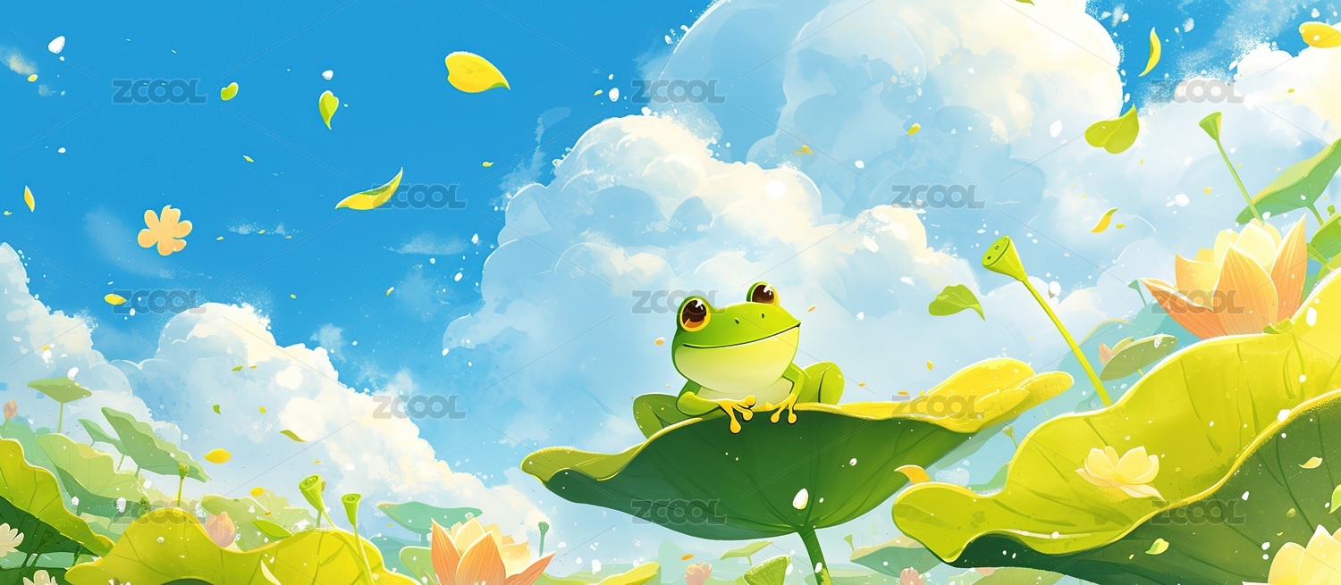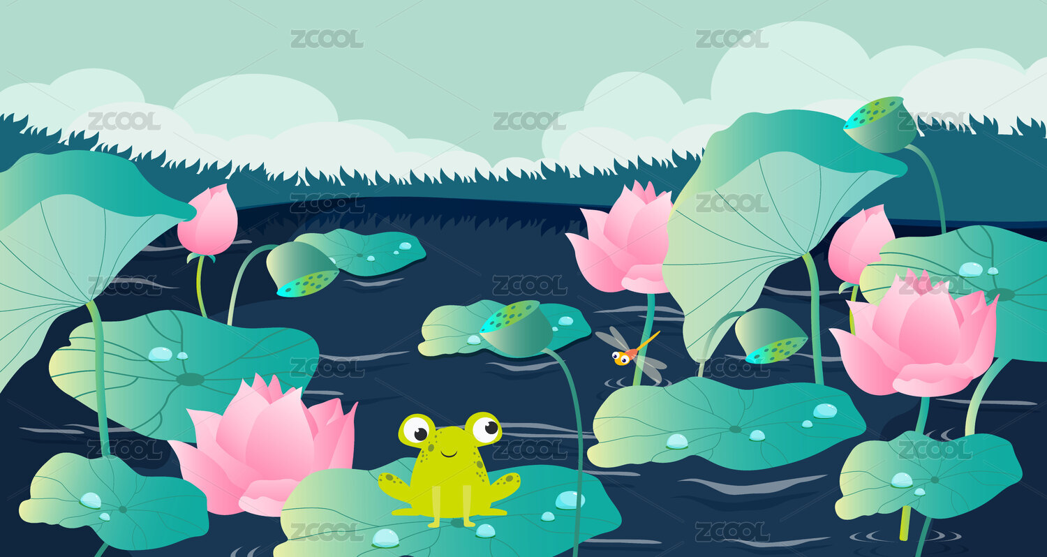 卡通小青蛙荷葉元素插畫設(shè)計(jì)