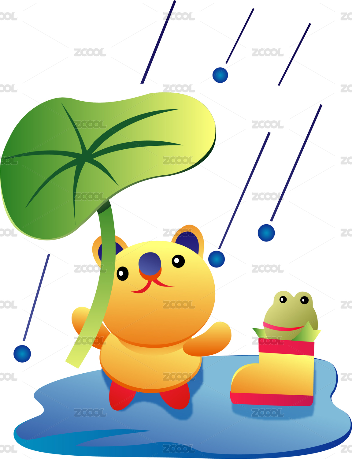 雨天用荷葉躲雨的小青蛙