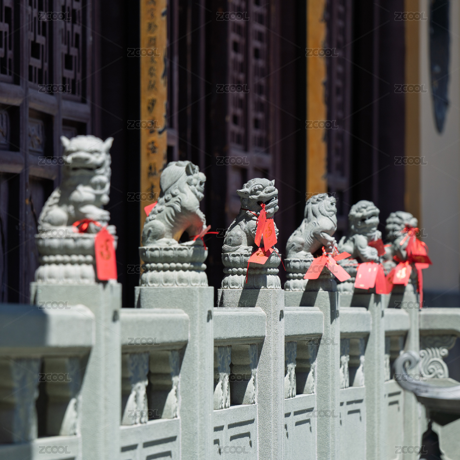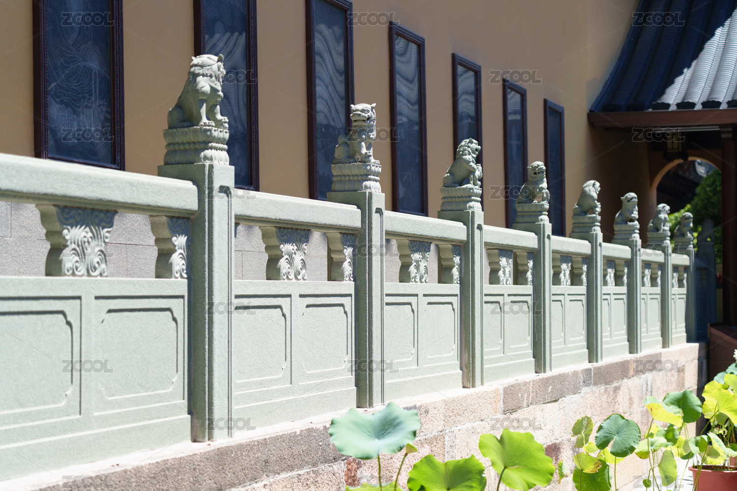 中式庭院的石獅護(hù)欄