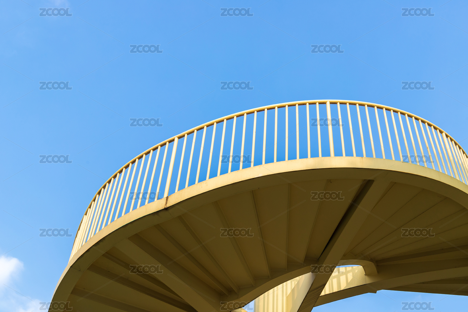 藍(lán)天白云背景中的螺旋狀樓梯護(hù)欄