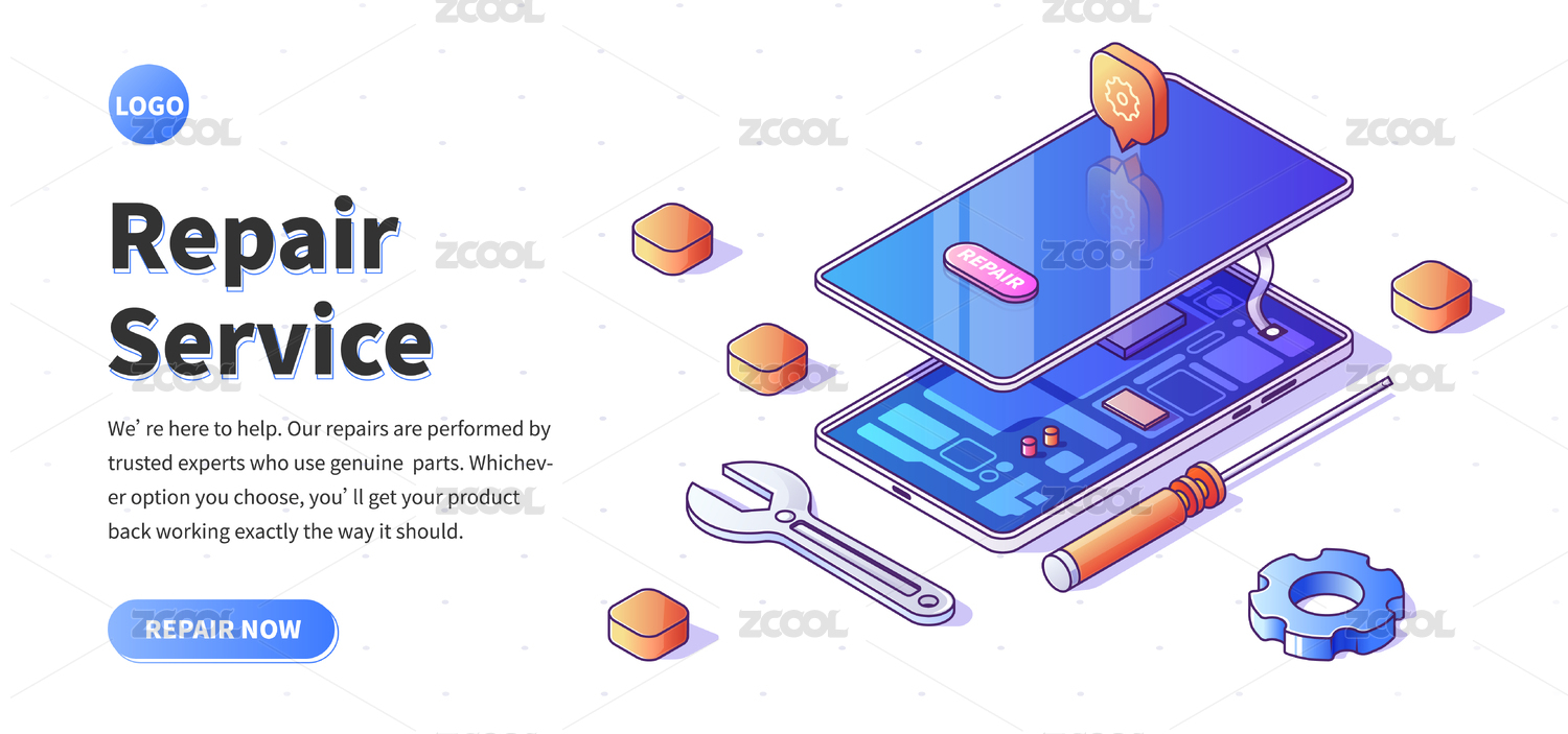 打開手機(jī)屏幕進(jìn)行維修矢量插畫