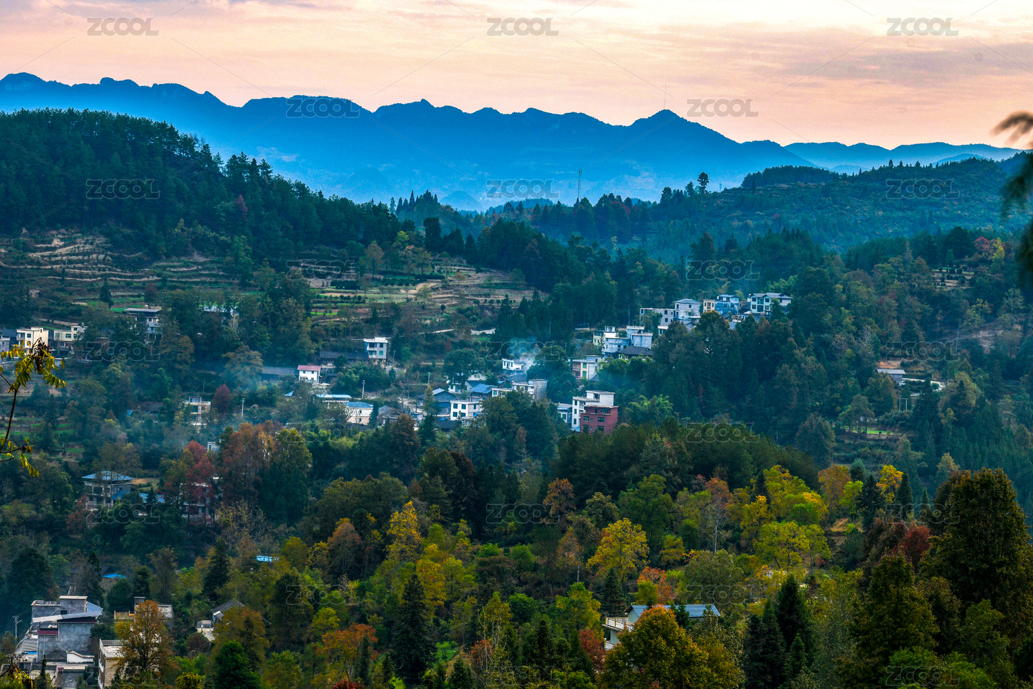 重慶酉陽冬日霞光溢彩美鄉(xiāng)村