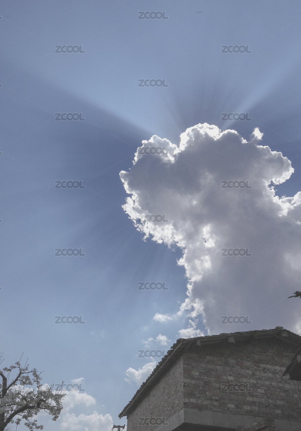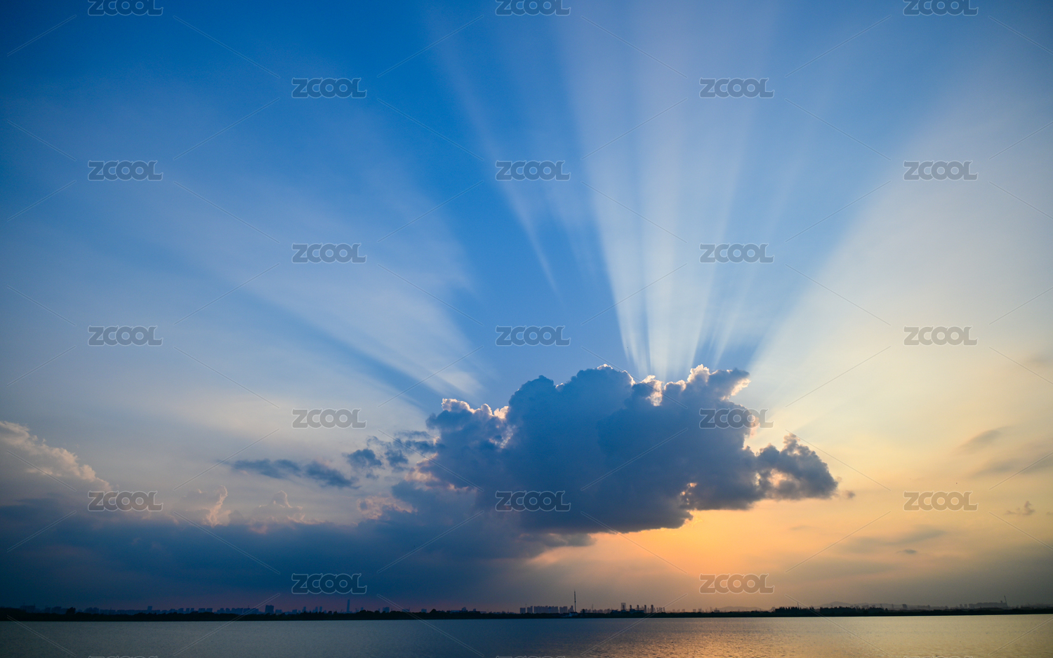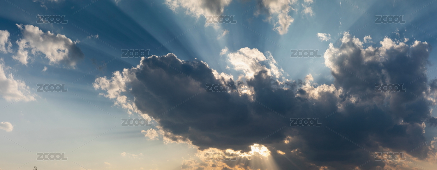天空中刺破烏云的霞光景觀