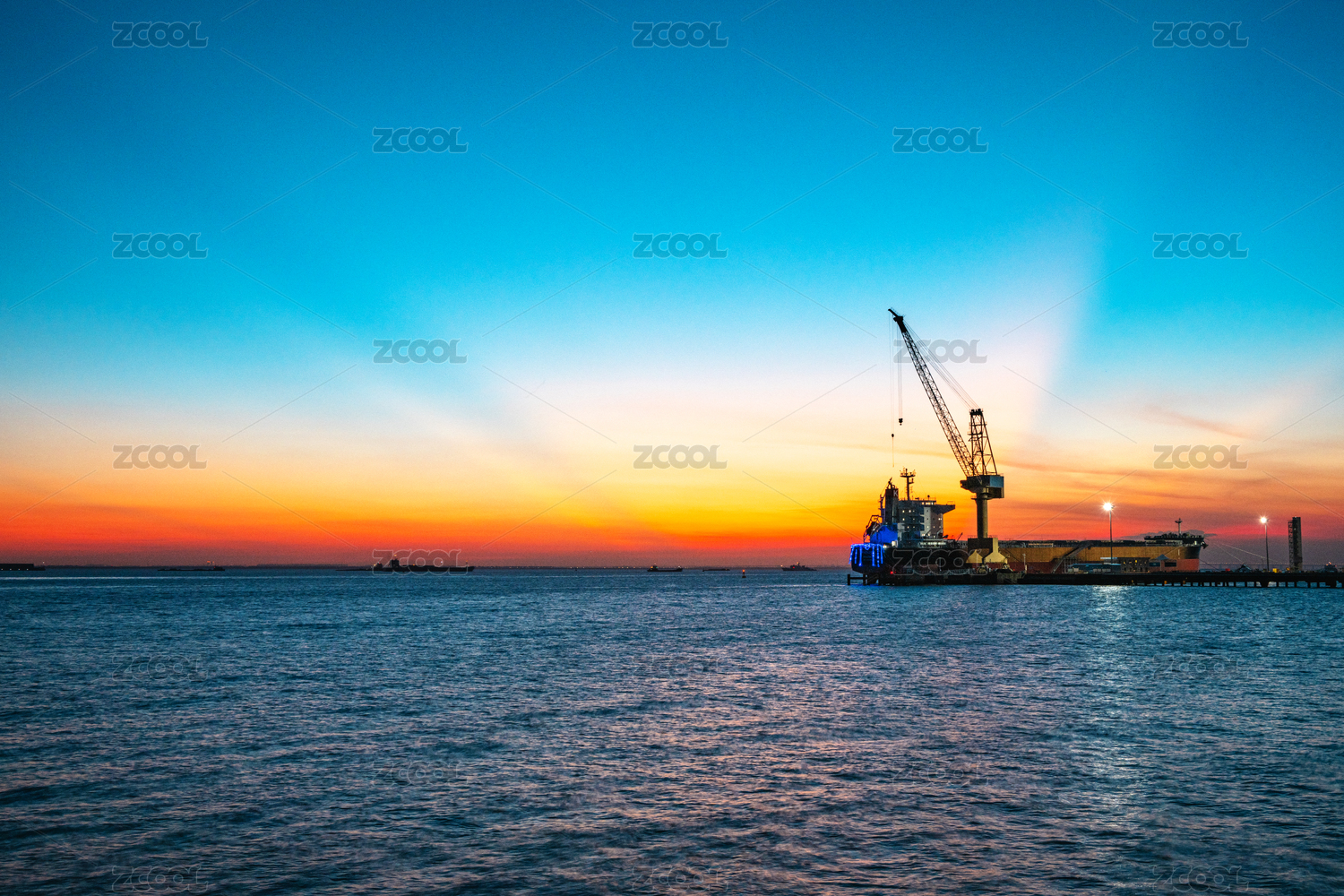 霞光里大海上遠航的船隊