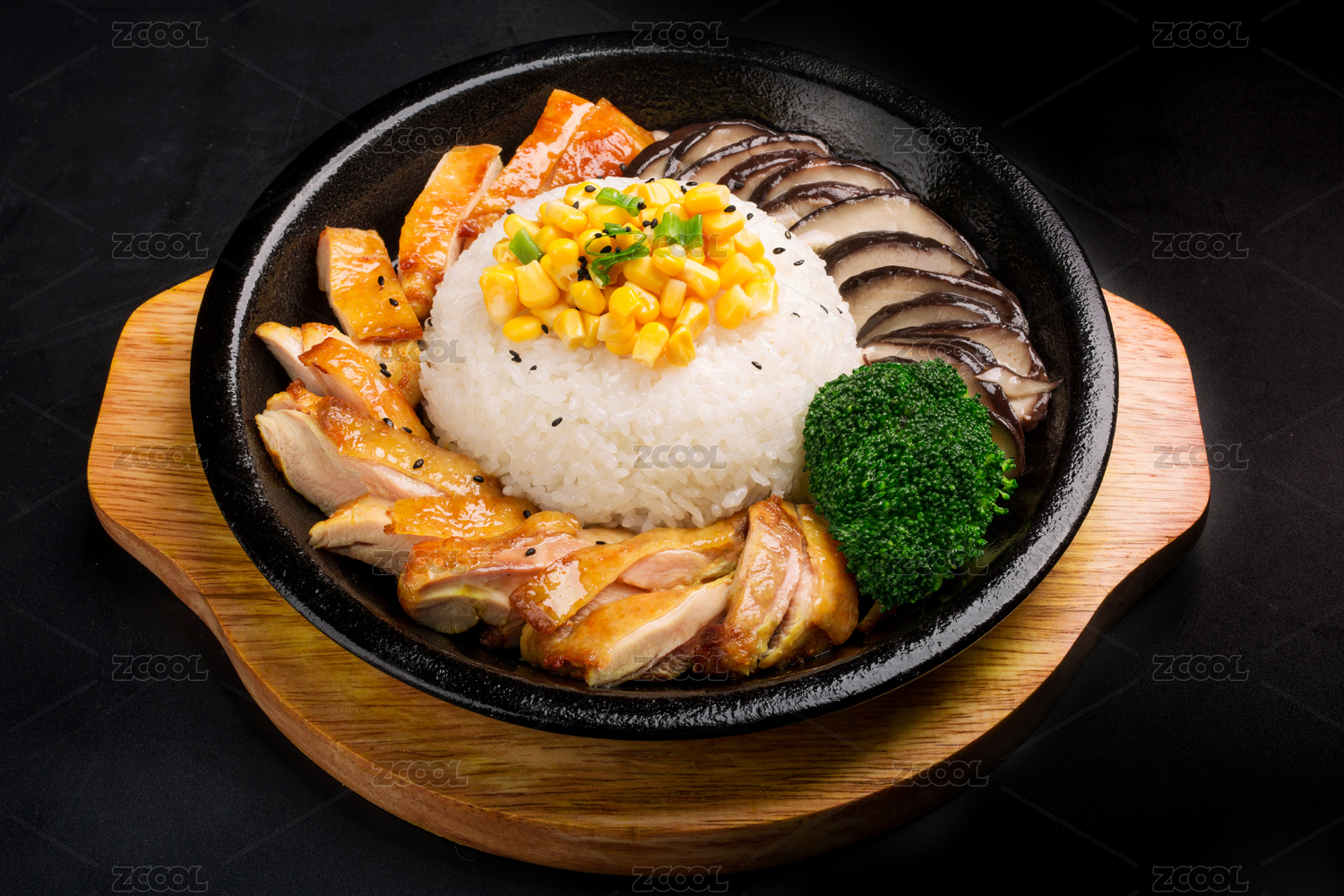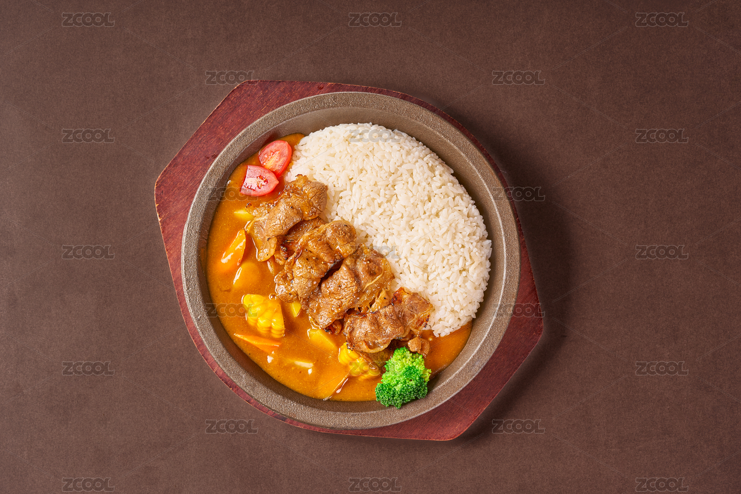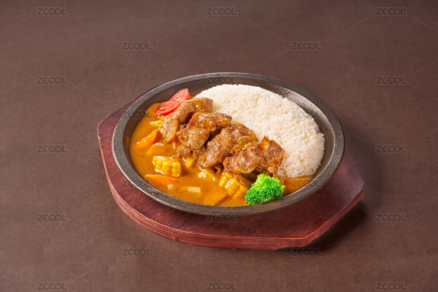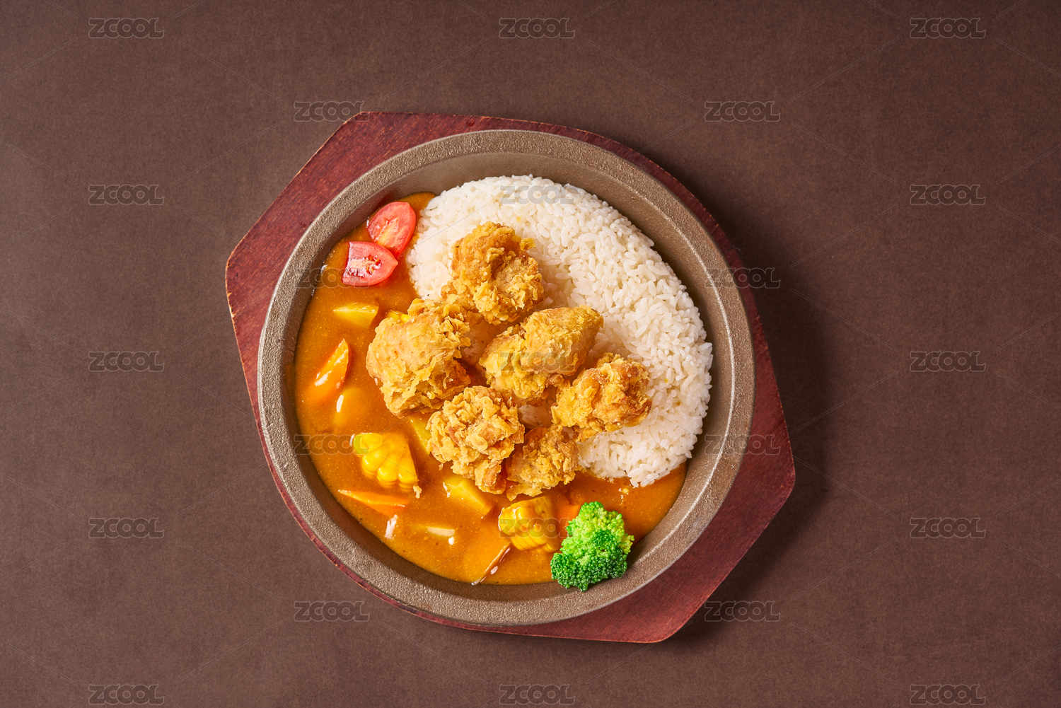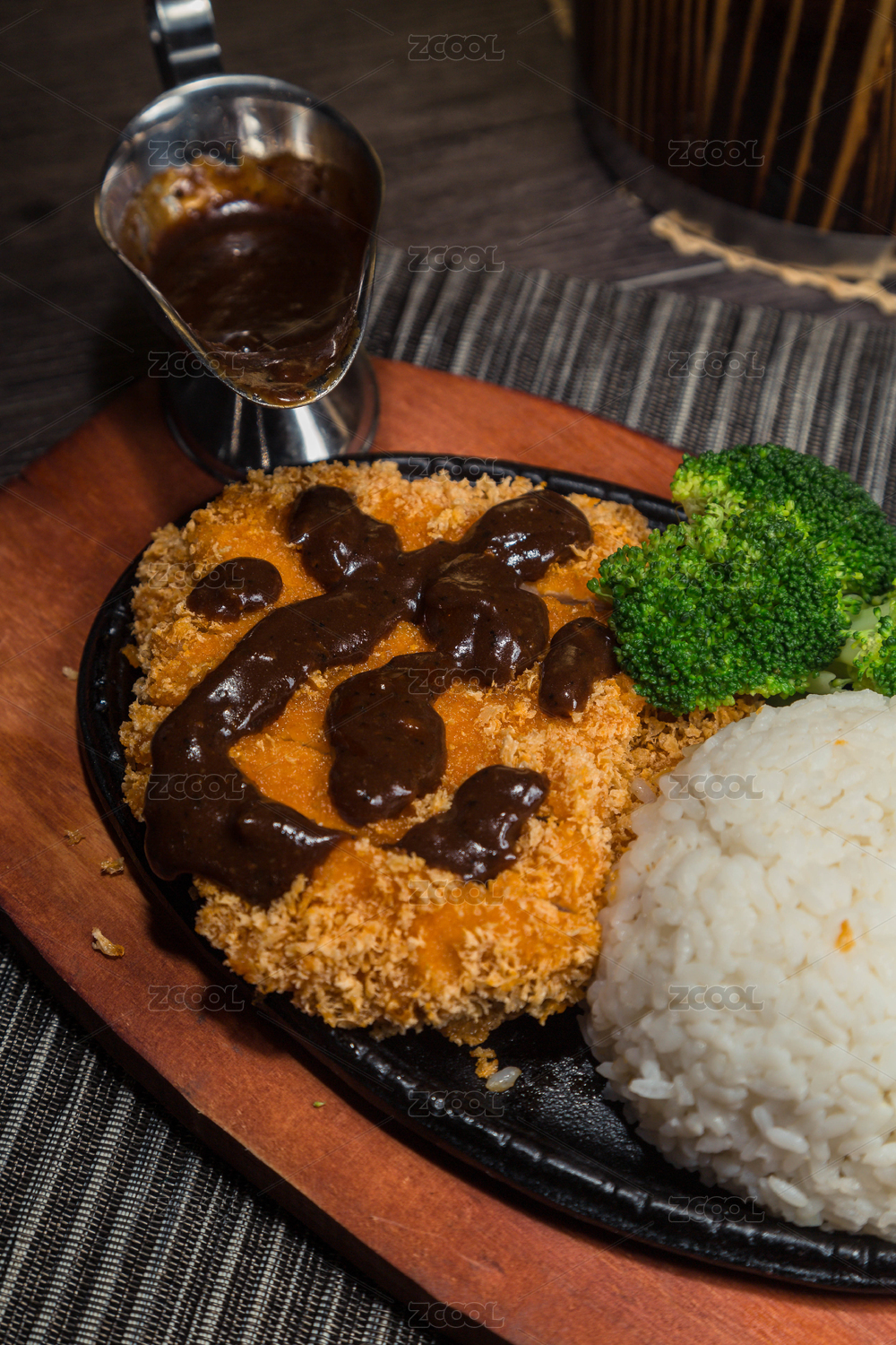 放在鐵盤(pán)里的無(wú)骨炸雞咖喱鐵板飯