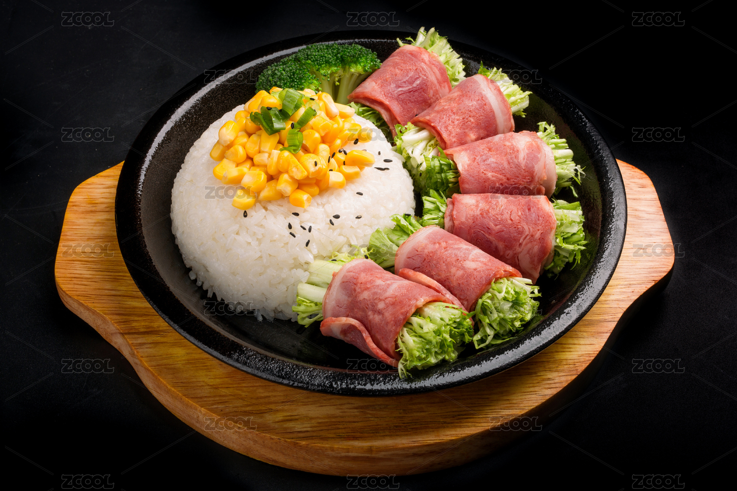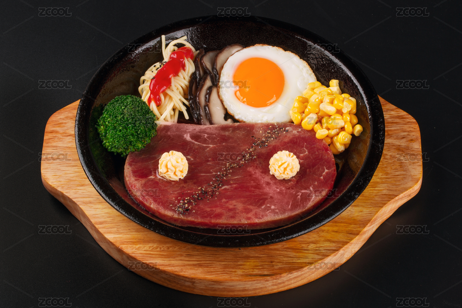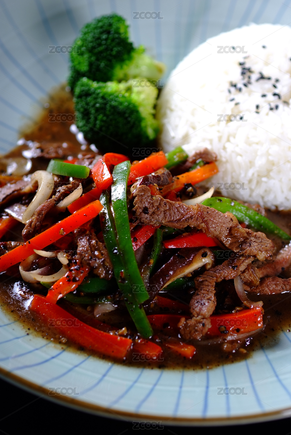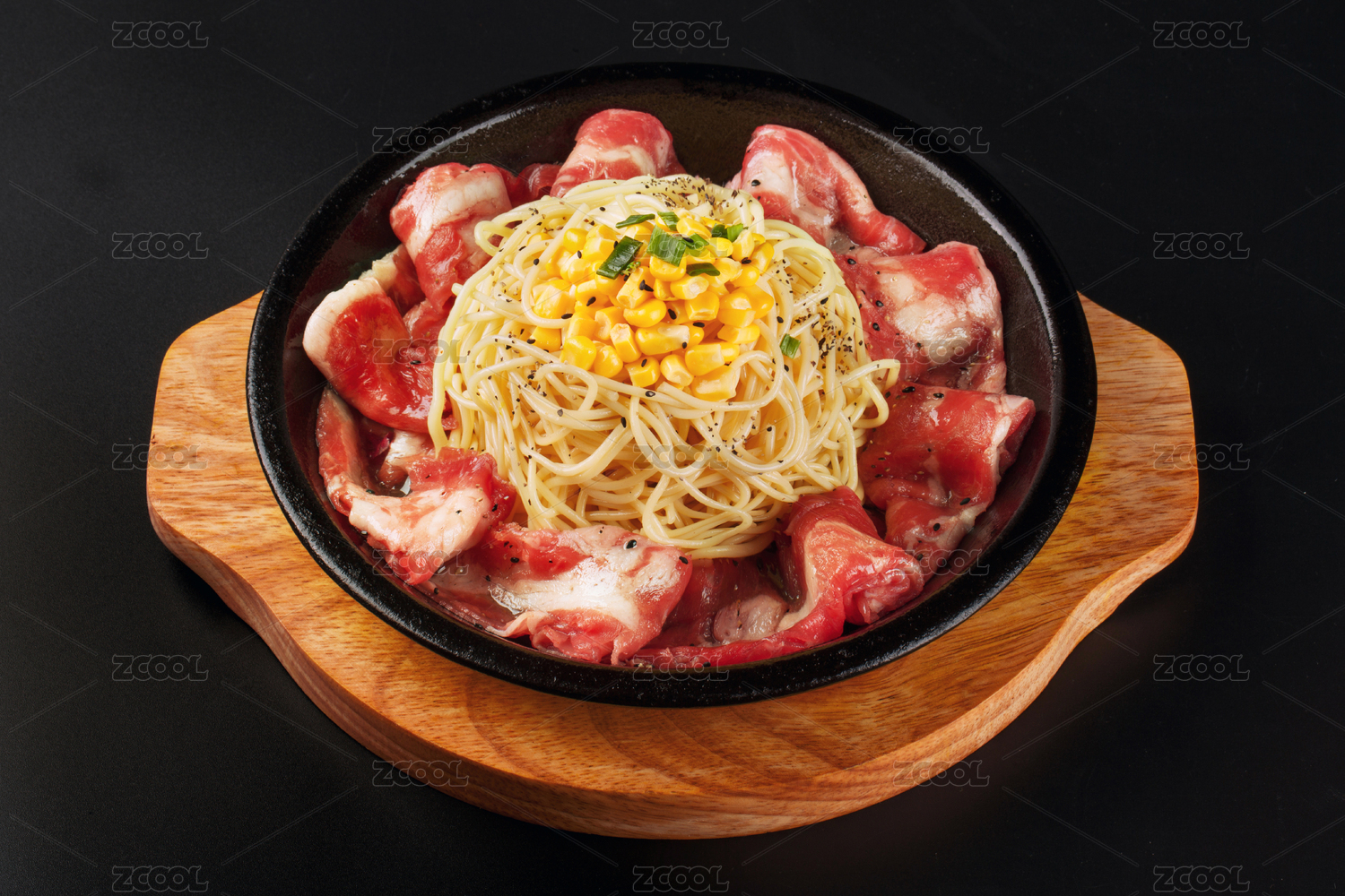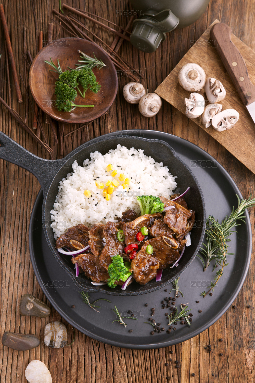 放在鐵盤(pán)里的黑椒肥牛肉鐵板飯