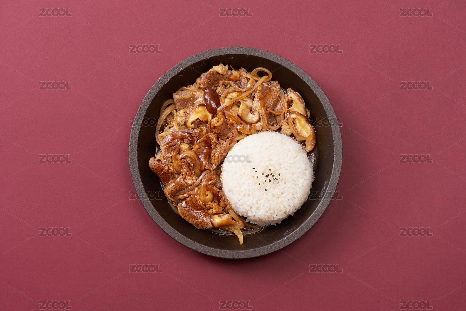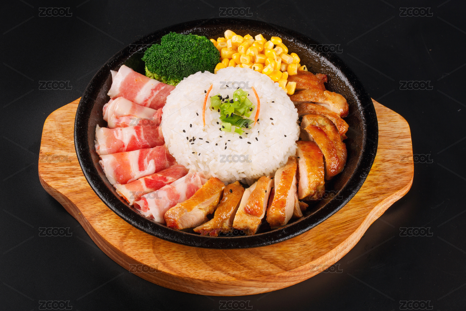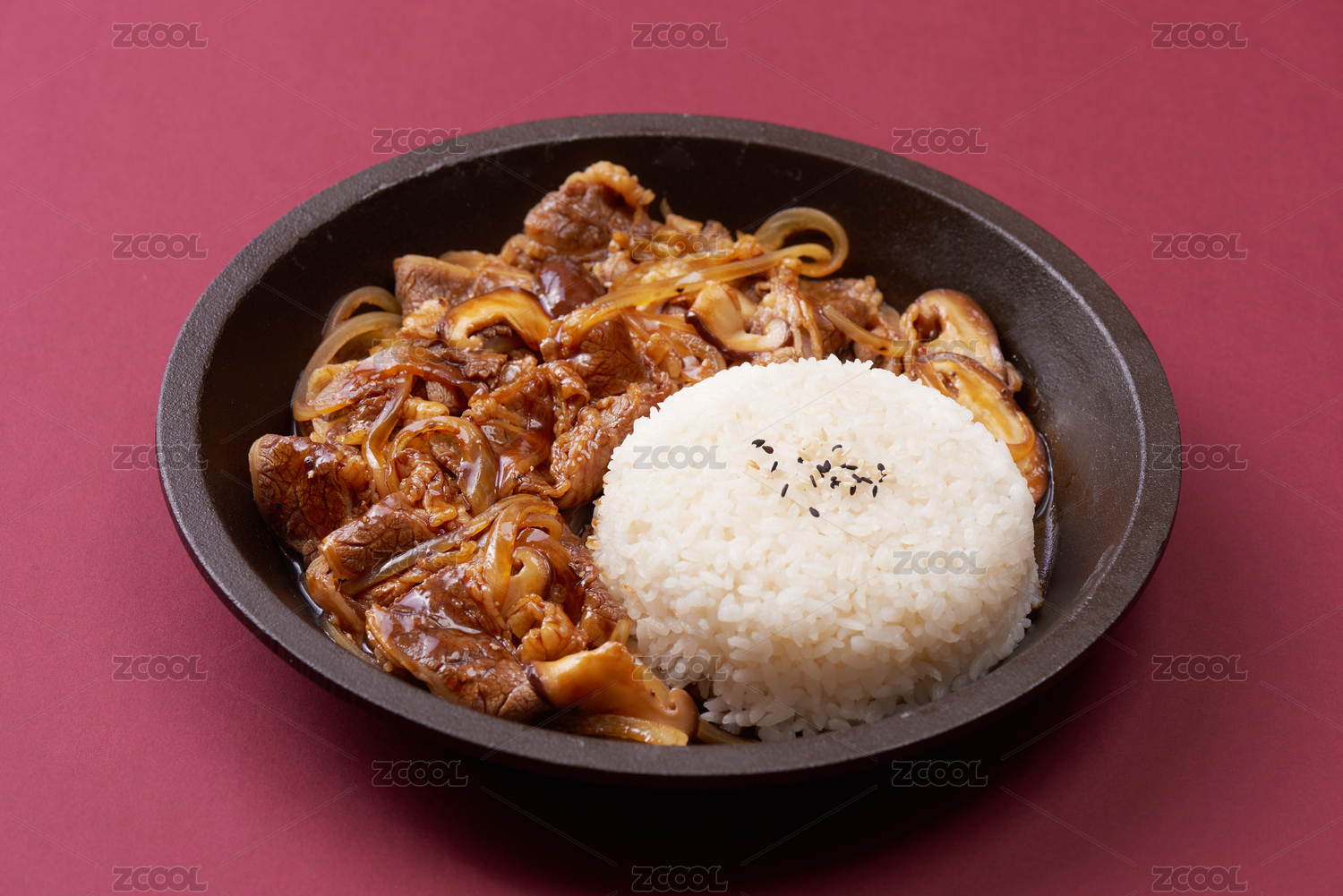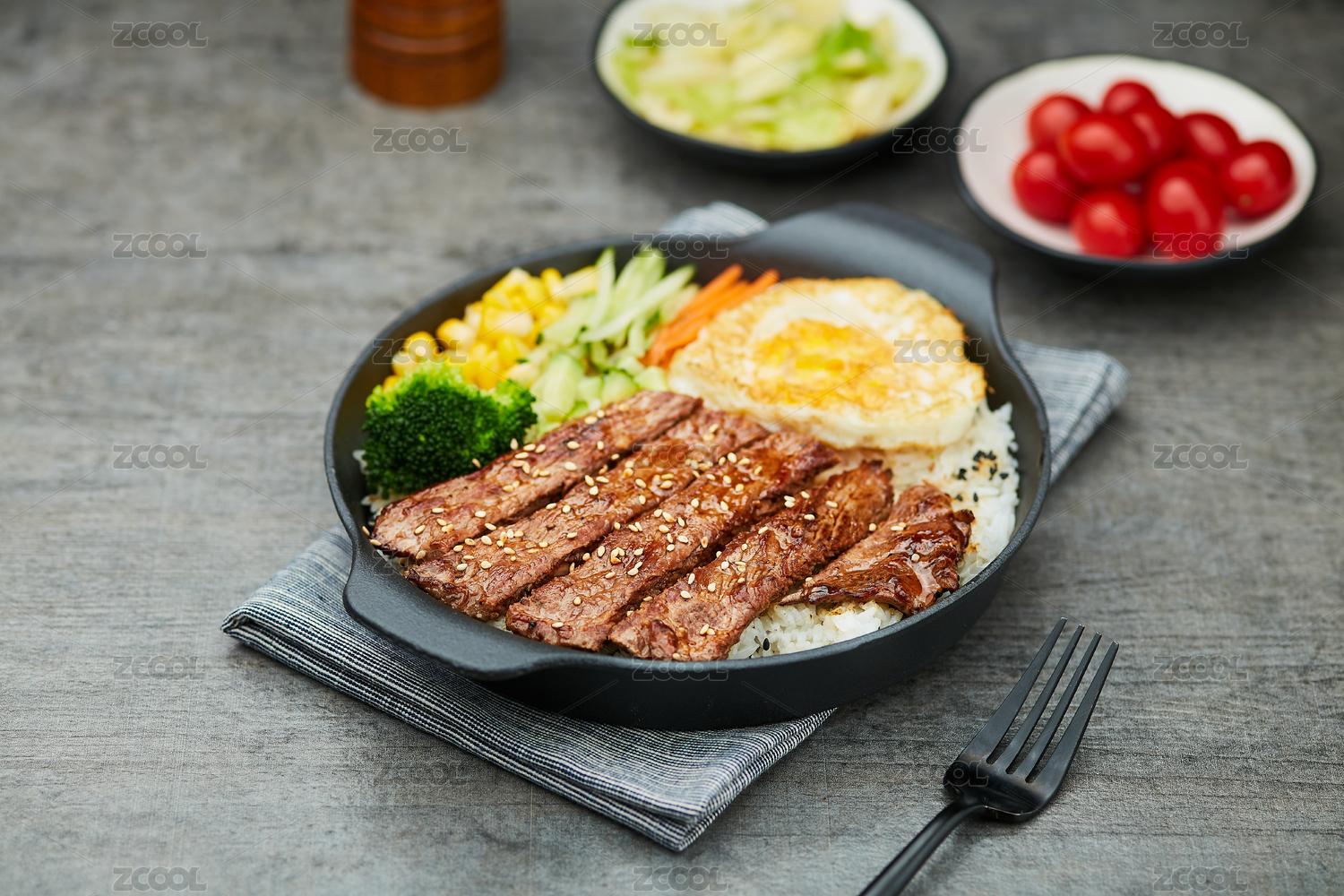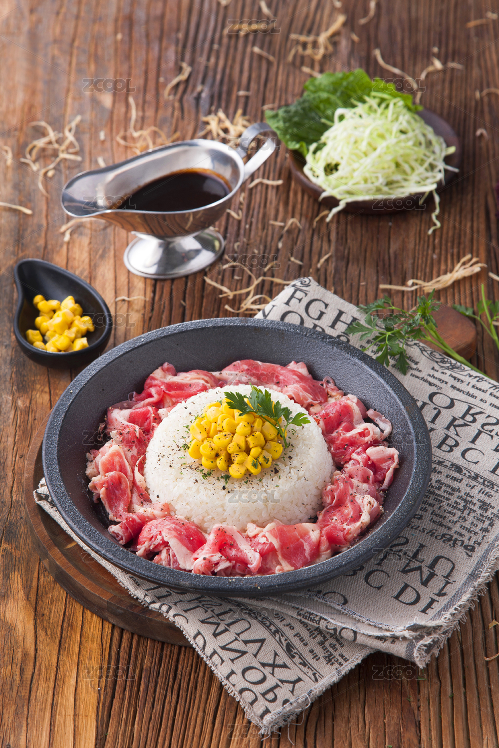 放在鐵盤(pán)里的黑椒肥牛肉鐵板飯
