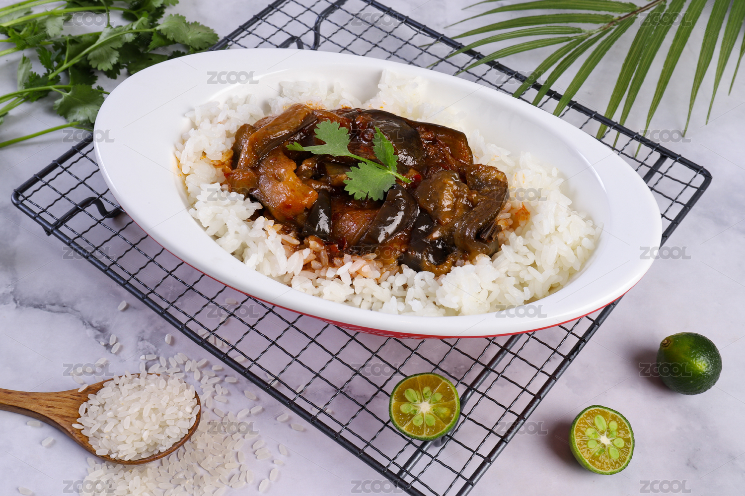碗里的快餐魚(yú)香茄子蓋澆飯