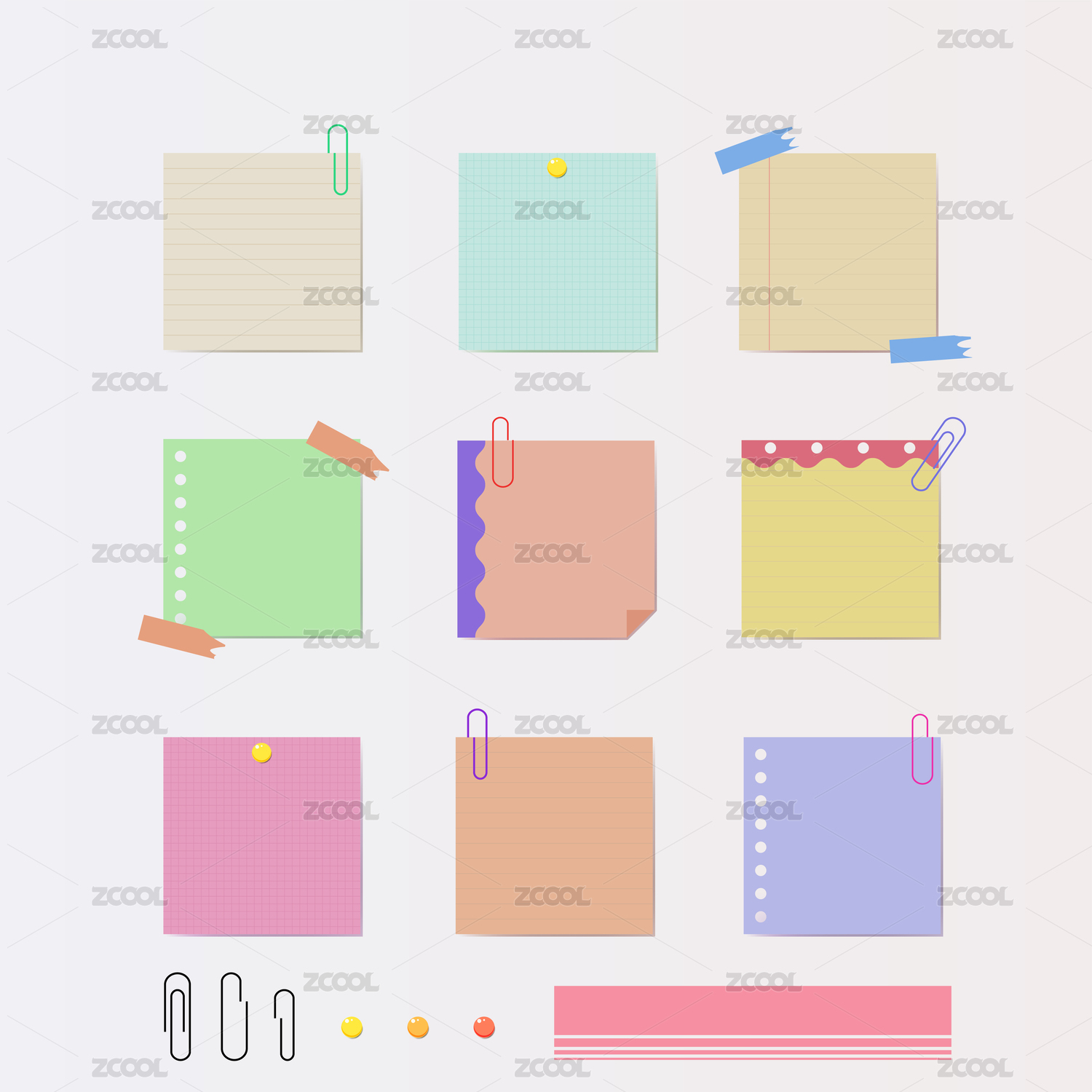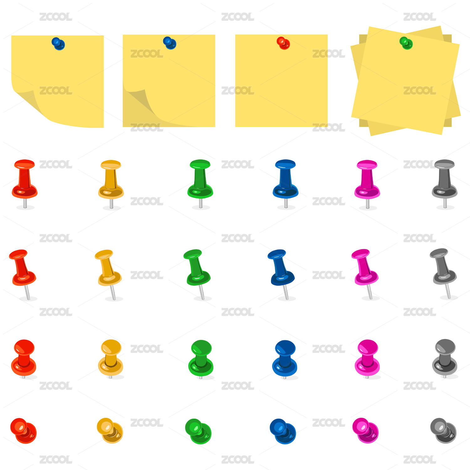 各種便簽紙與圖釘插畫(huà)素材矢量圖