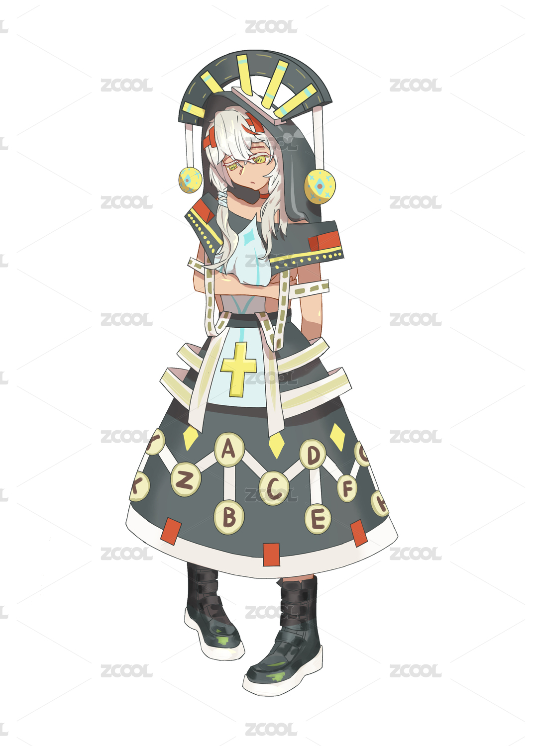穿著復(fù)古牧師服裝的羞澀少女