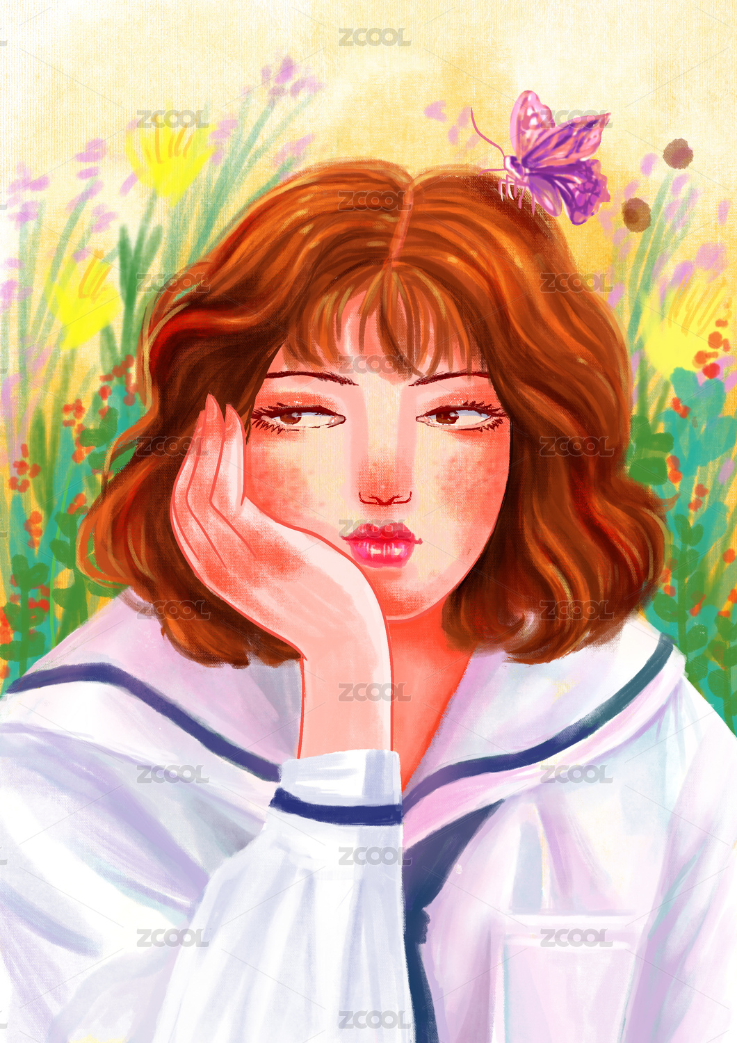 厚涂風(fēng)美少女托腮
