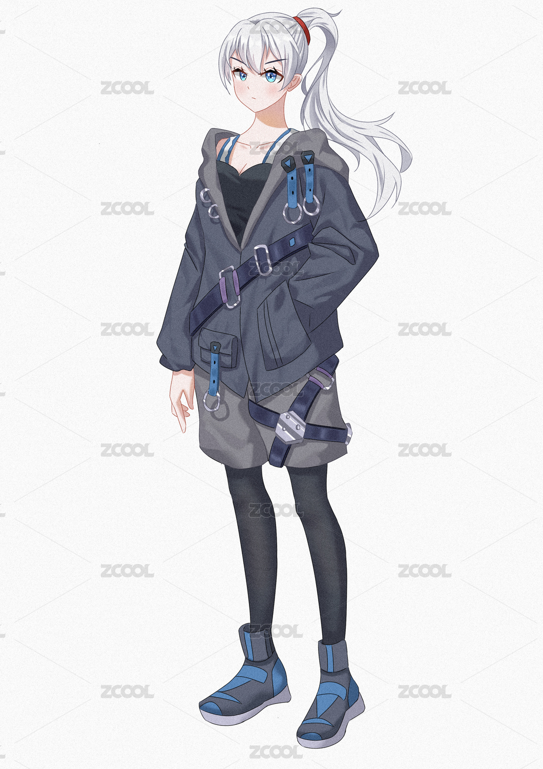 灰色日系漫畫風(fēng)街頭美少女
