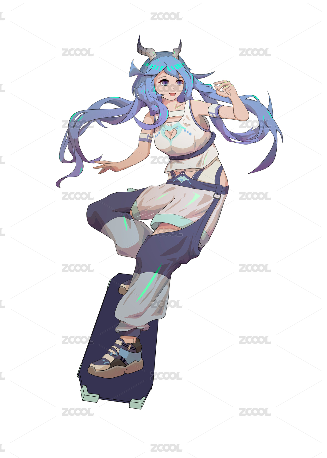 騎滑板的開朗美少女
