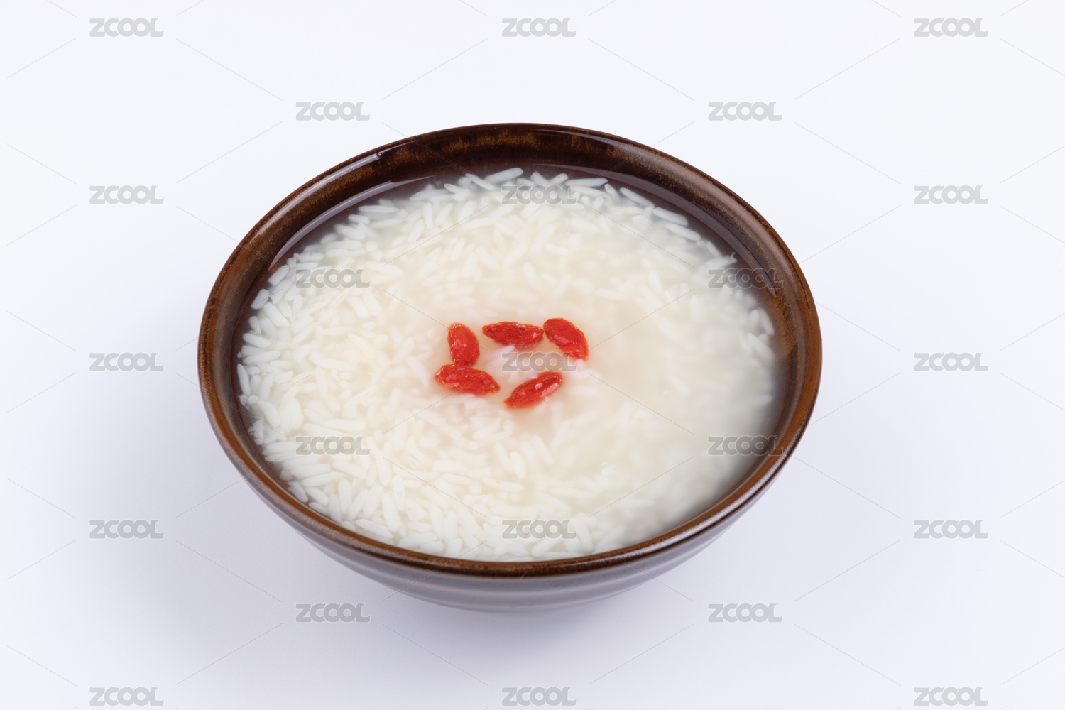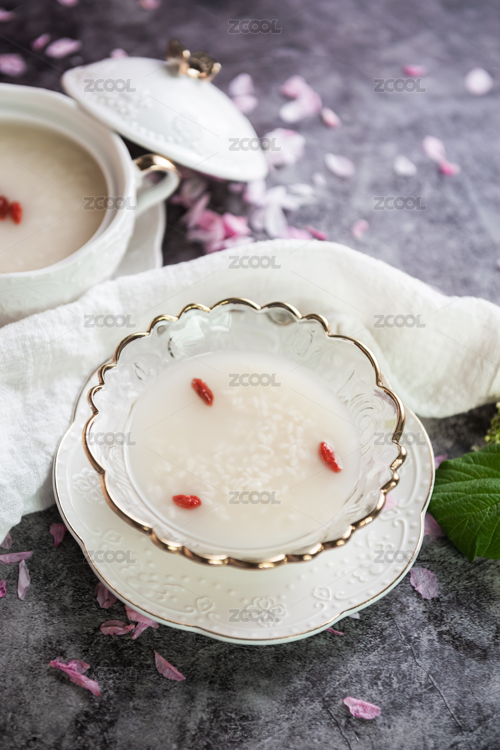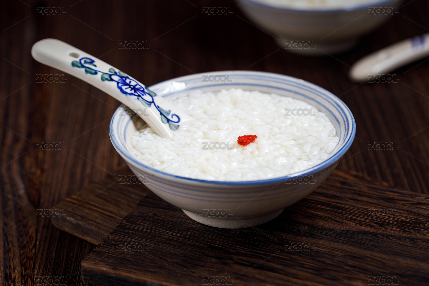 放在棕色木桌上的中國(guó)傳統(tǒng)小吃甜酒釀特寫(xiě)