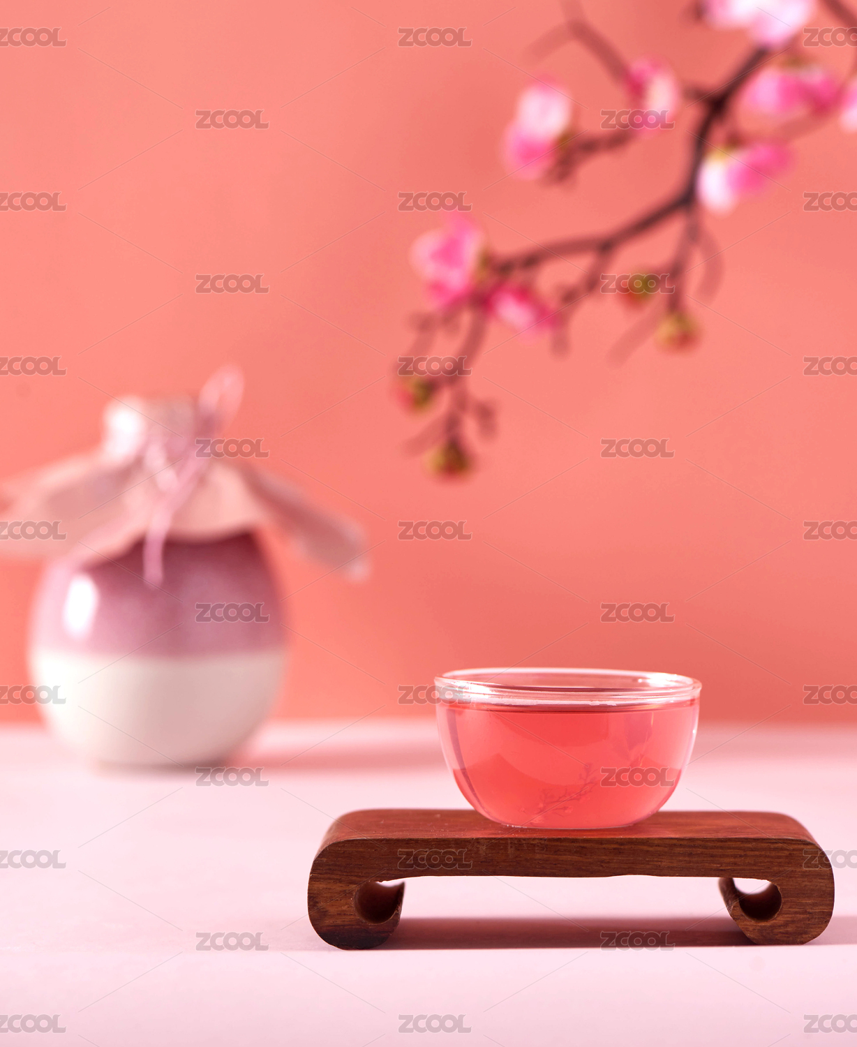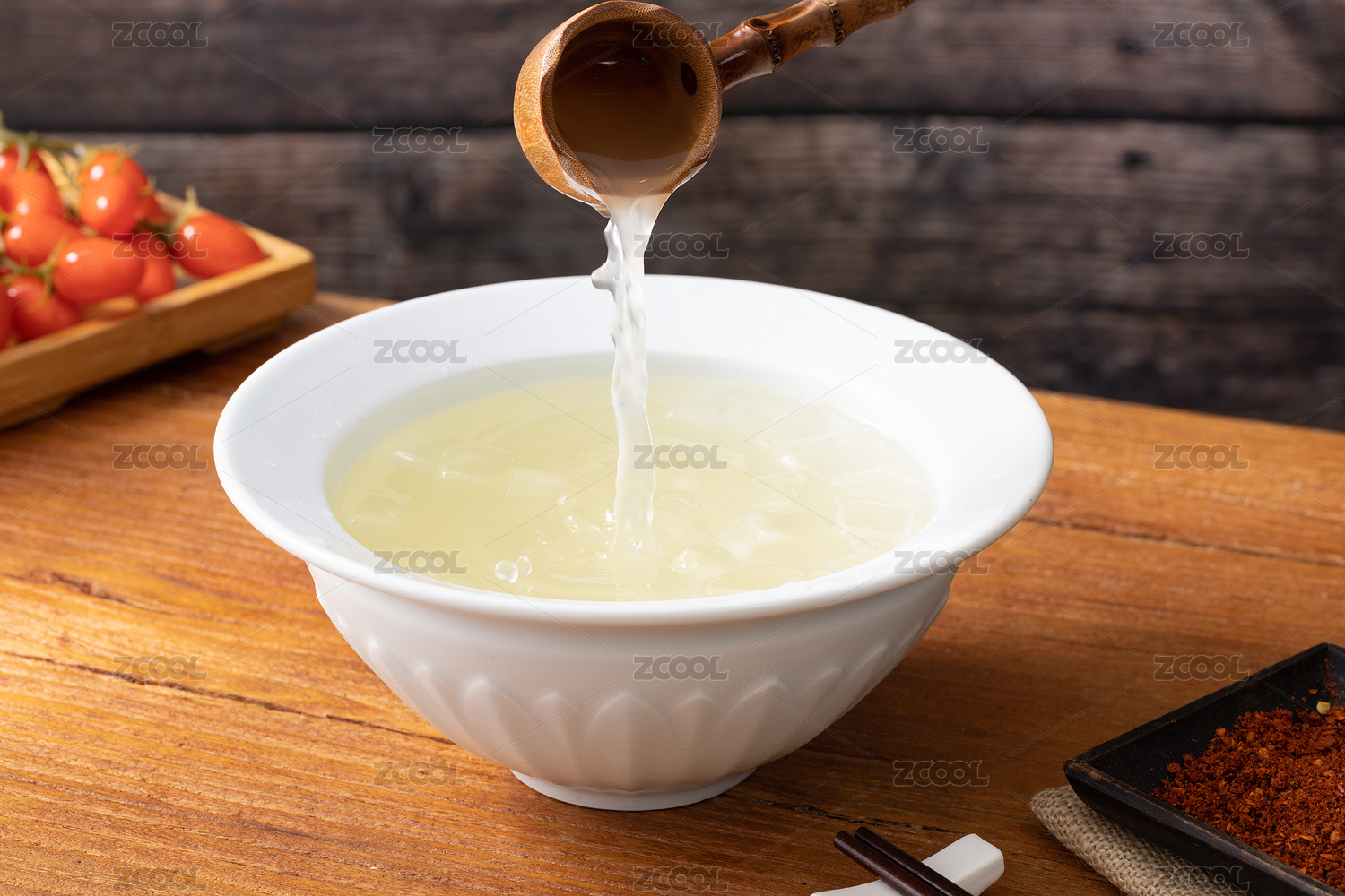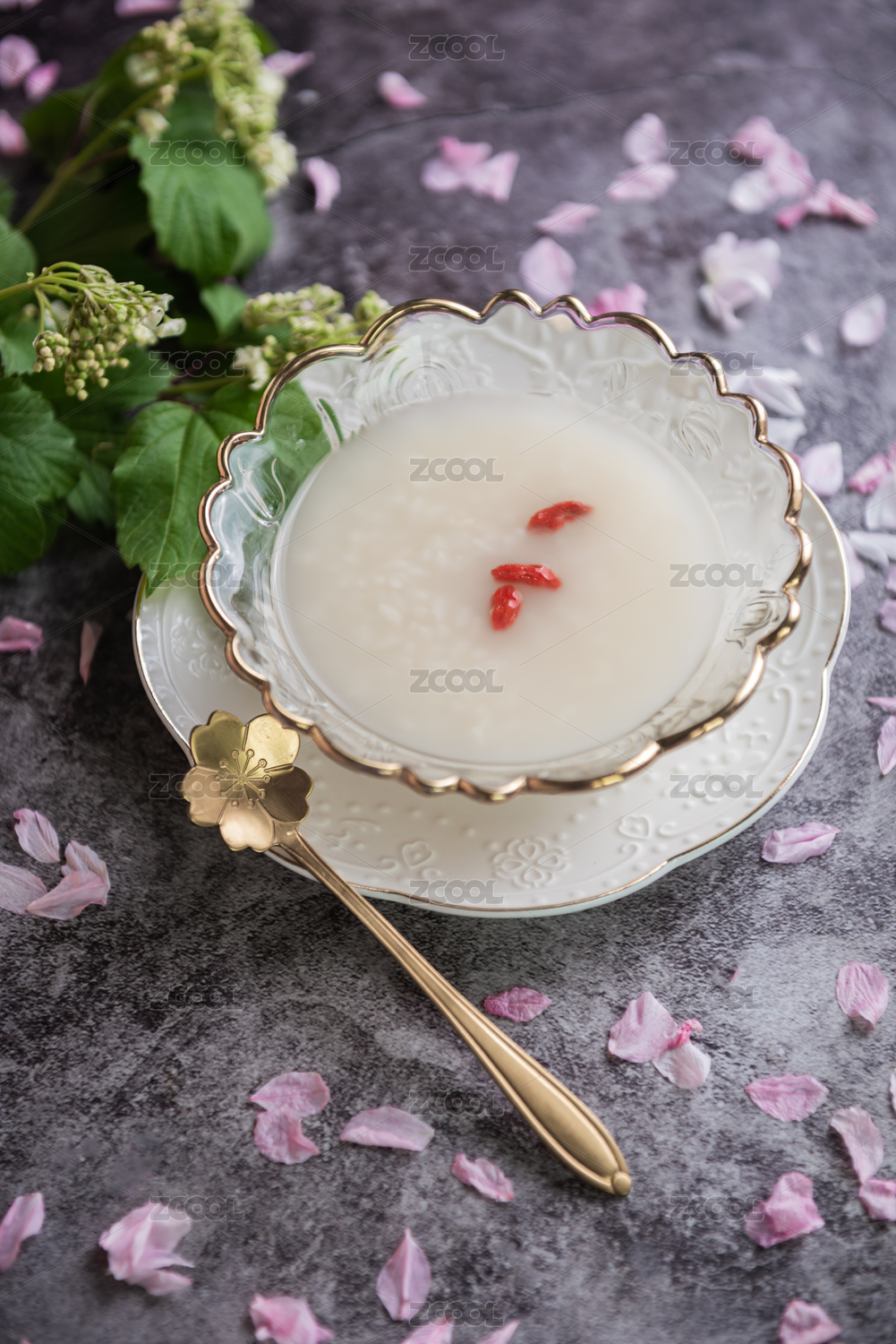 放在棕色木桌上的中國(guó)傳統(tǒng)小吃甜酒釀特寫(xiě)