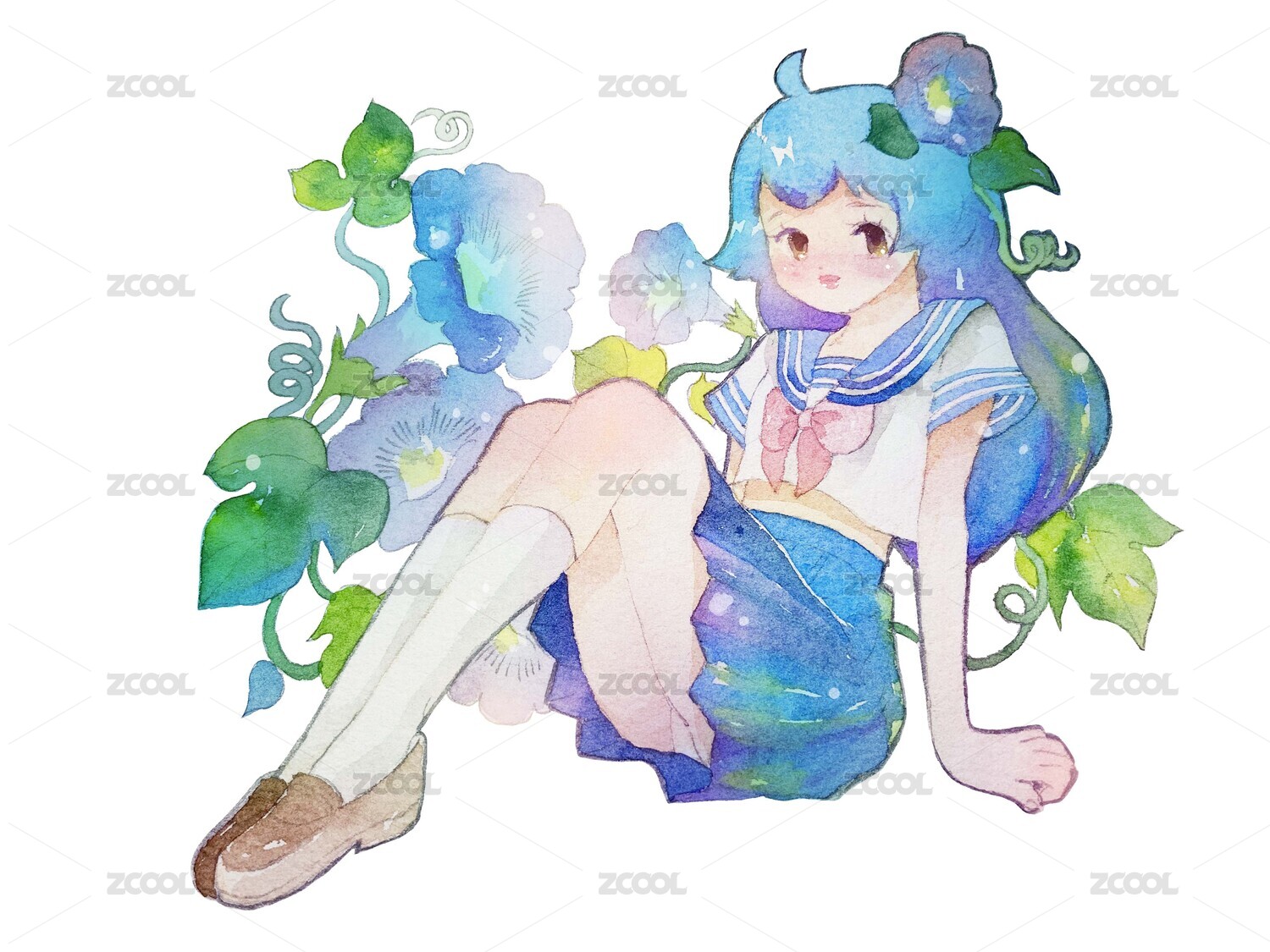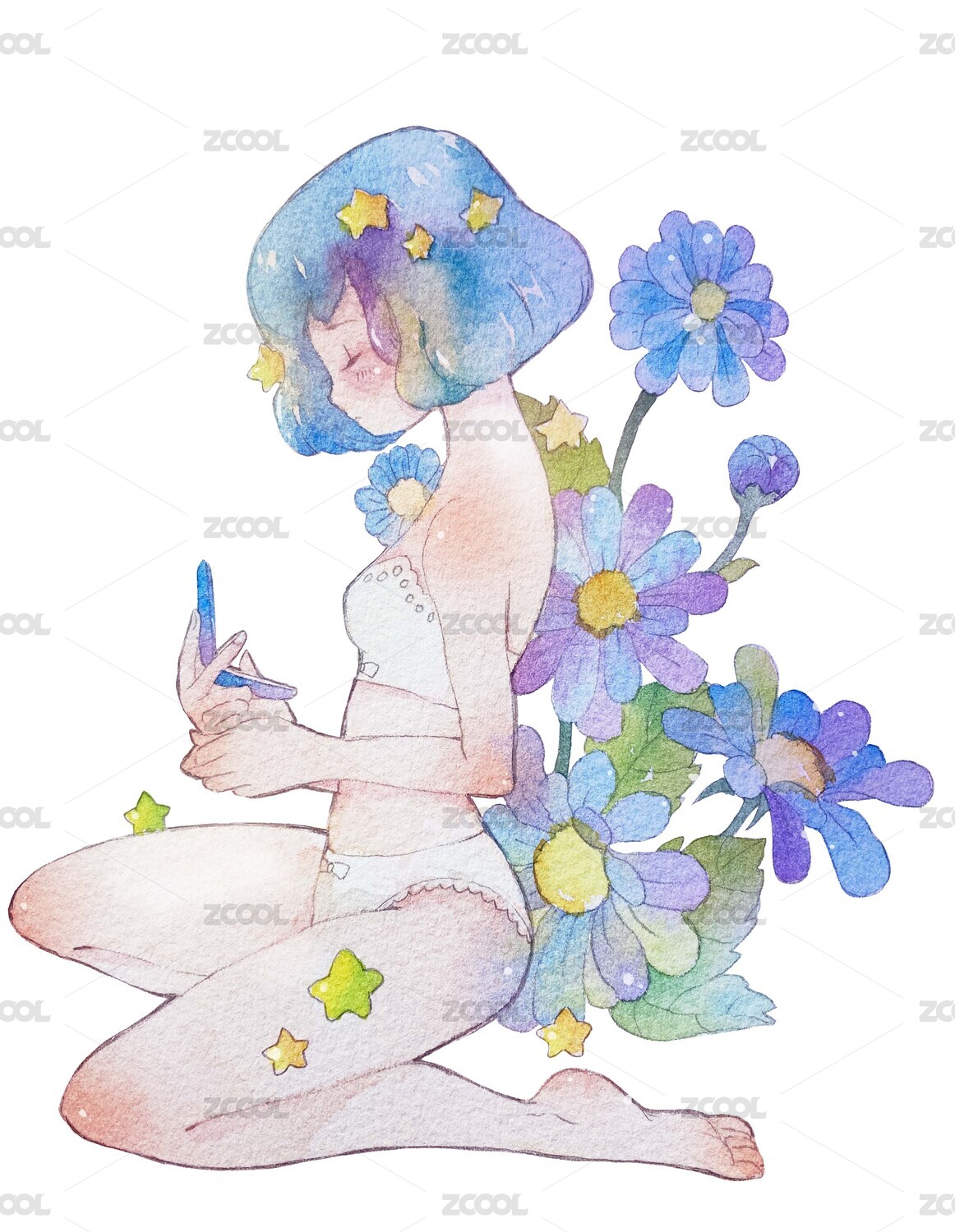 水彩牽?;ㄉ倥⒗L