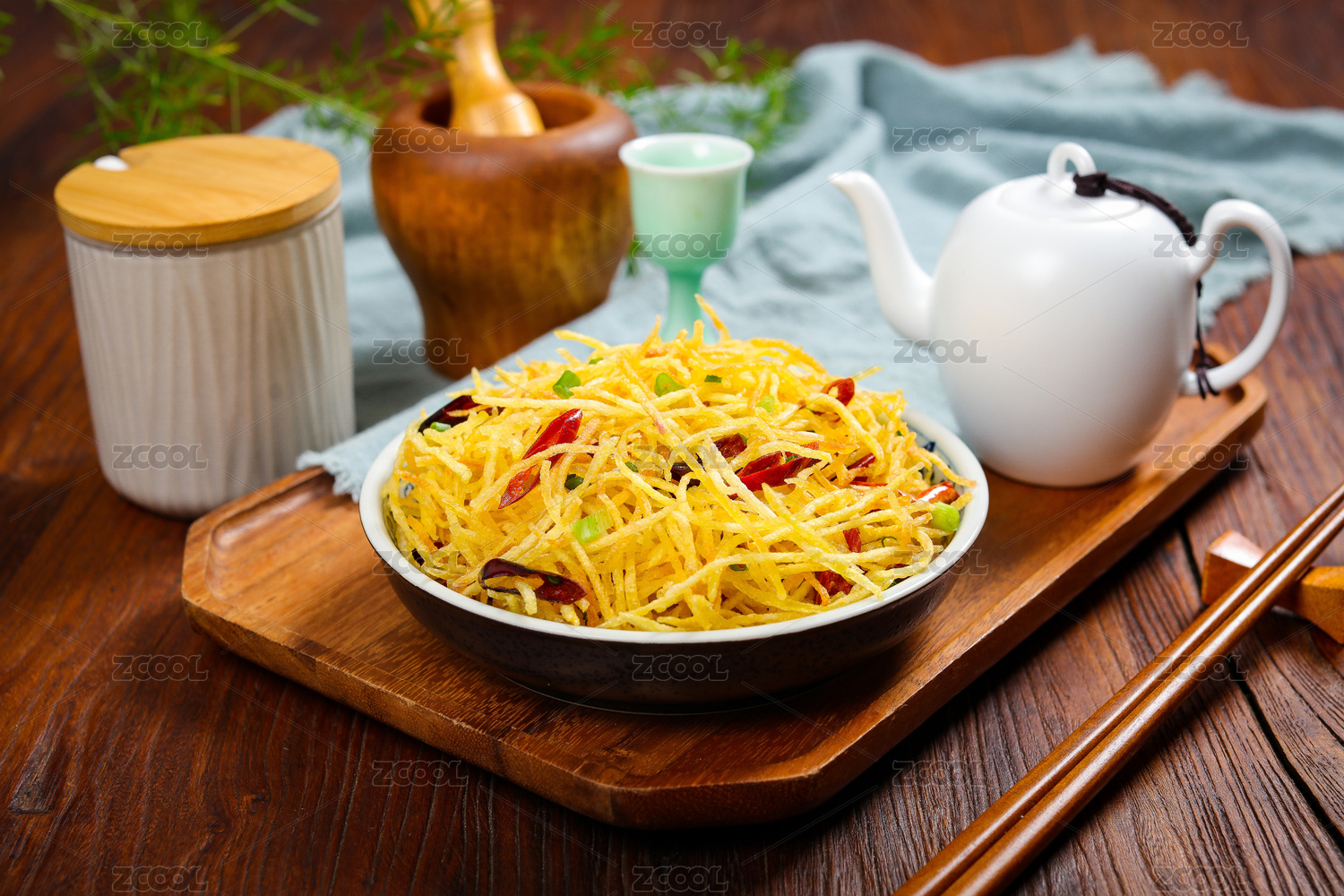 傳統(tǒng)四川麻辣風(fēng)味美食青椒炒土豆絲