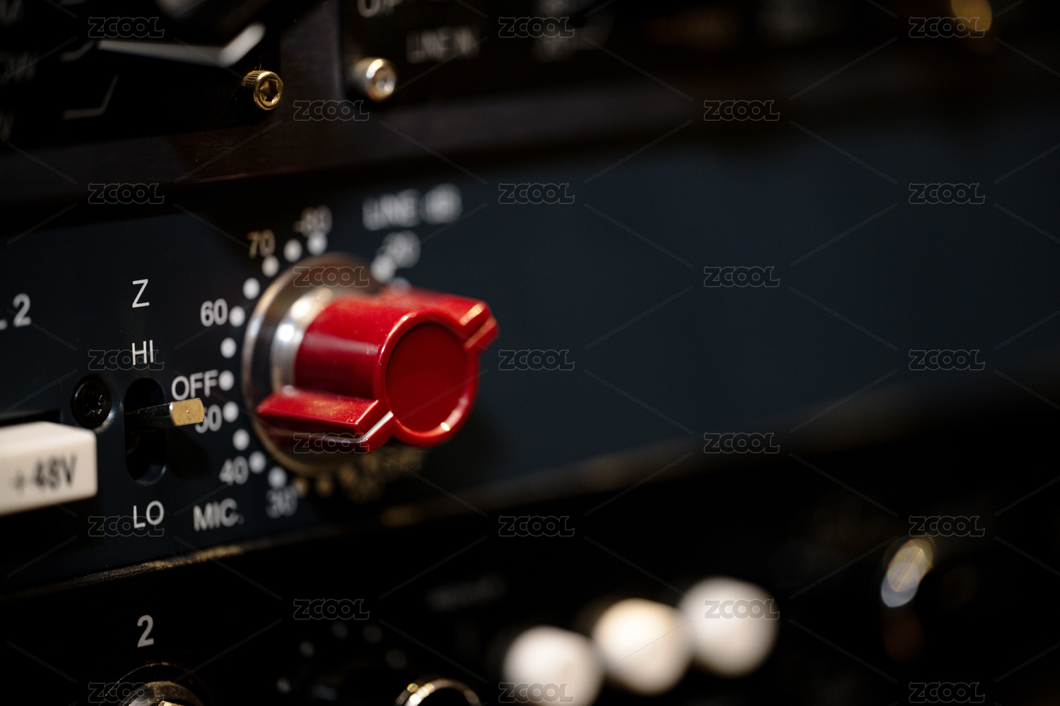 音頻設(shè)備上的紅色旋鈕特寫