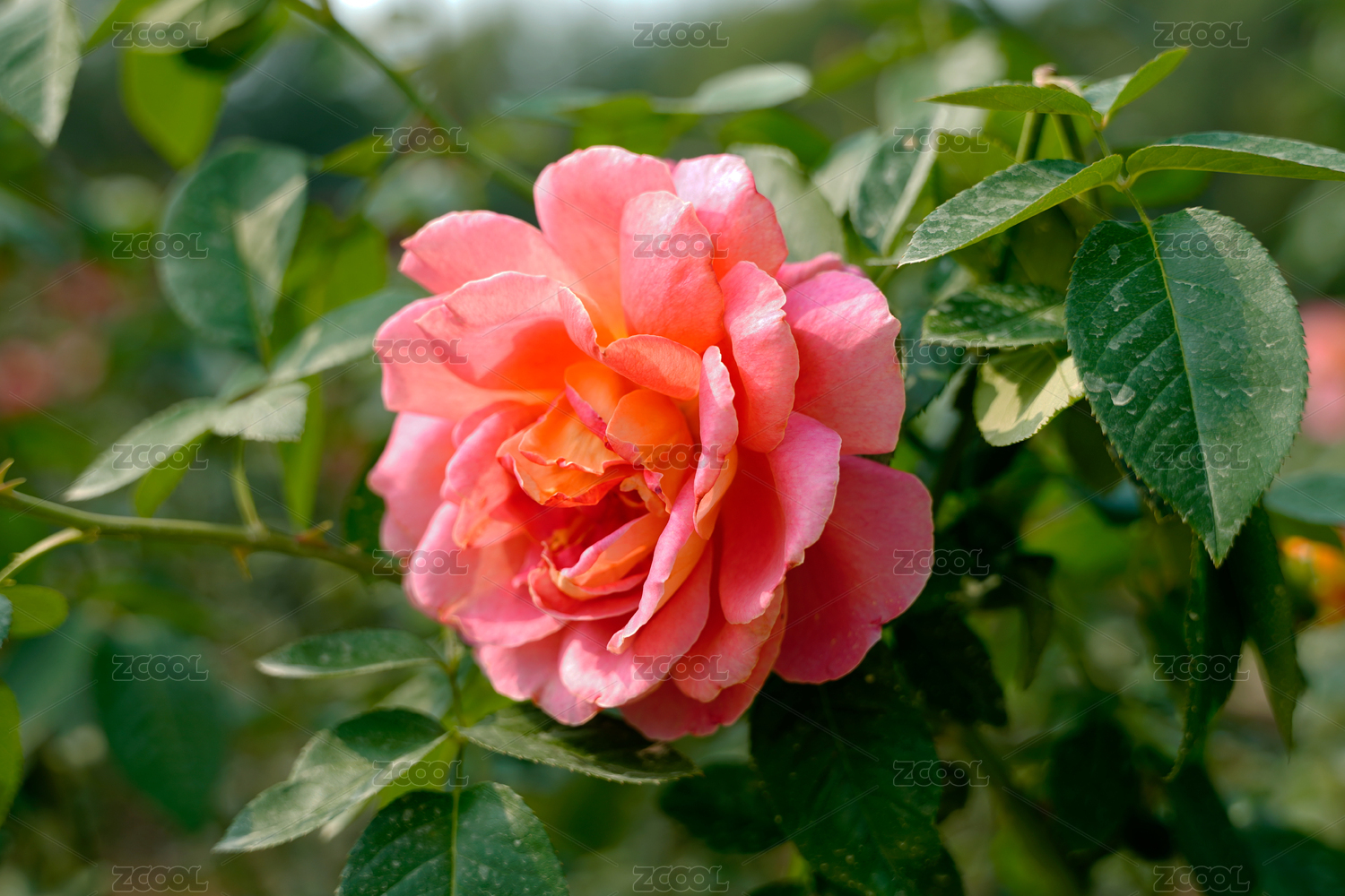 一朵粉紅色的月季花大特寫