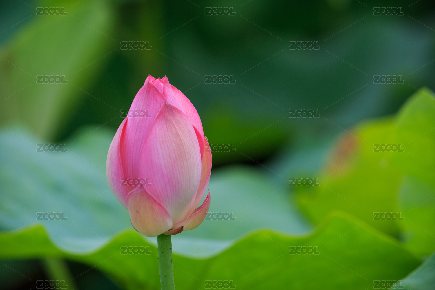 粉紅色的蓮花在綠葉中綻放