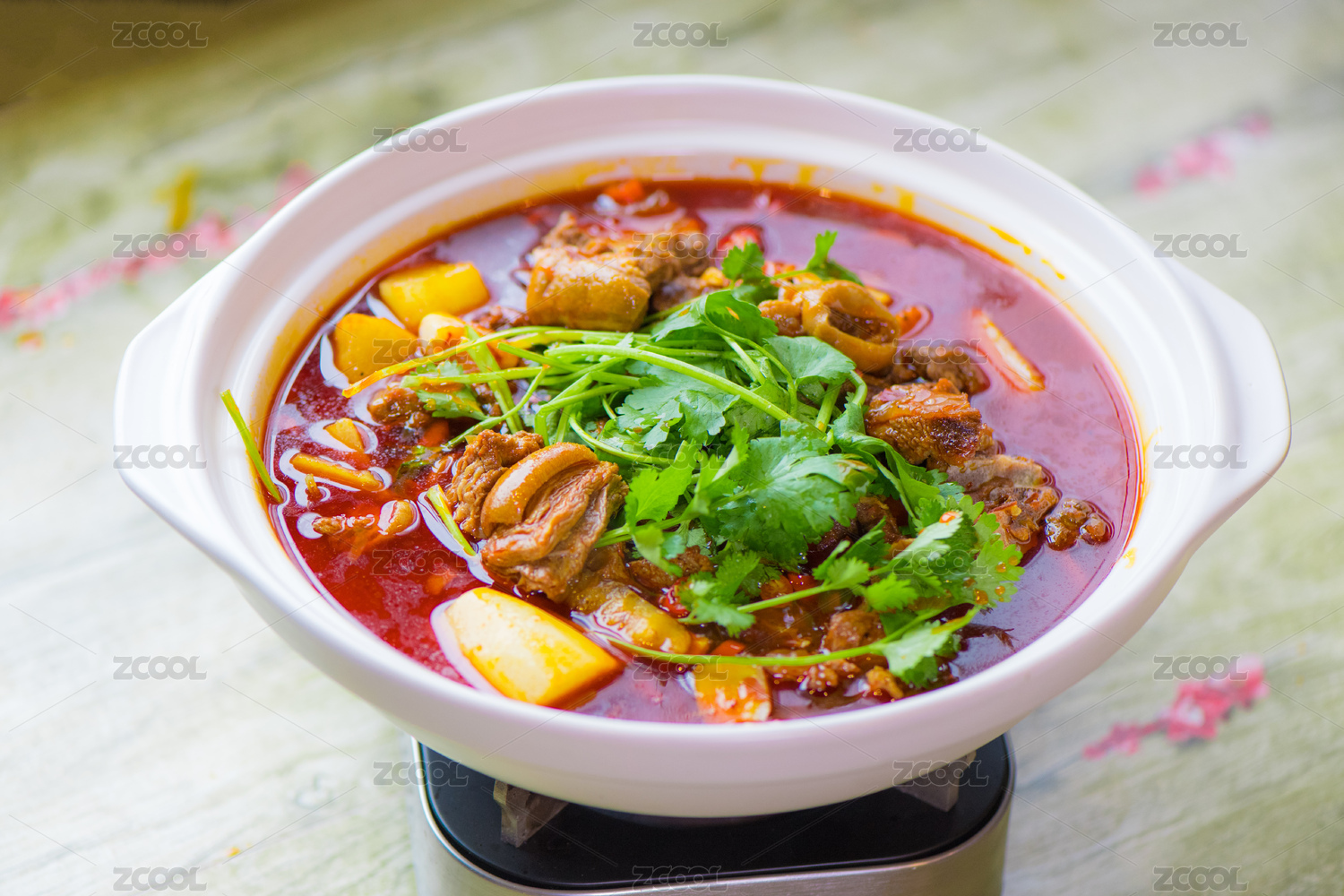 白色湯鍋里冒著熱氣的羊肉湯鍋