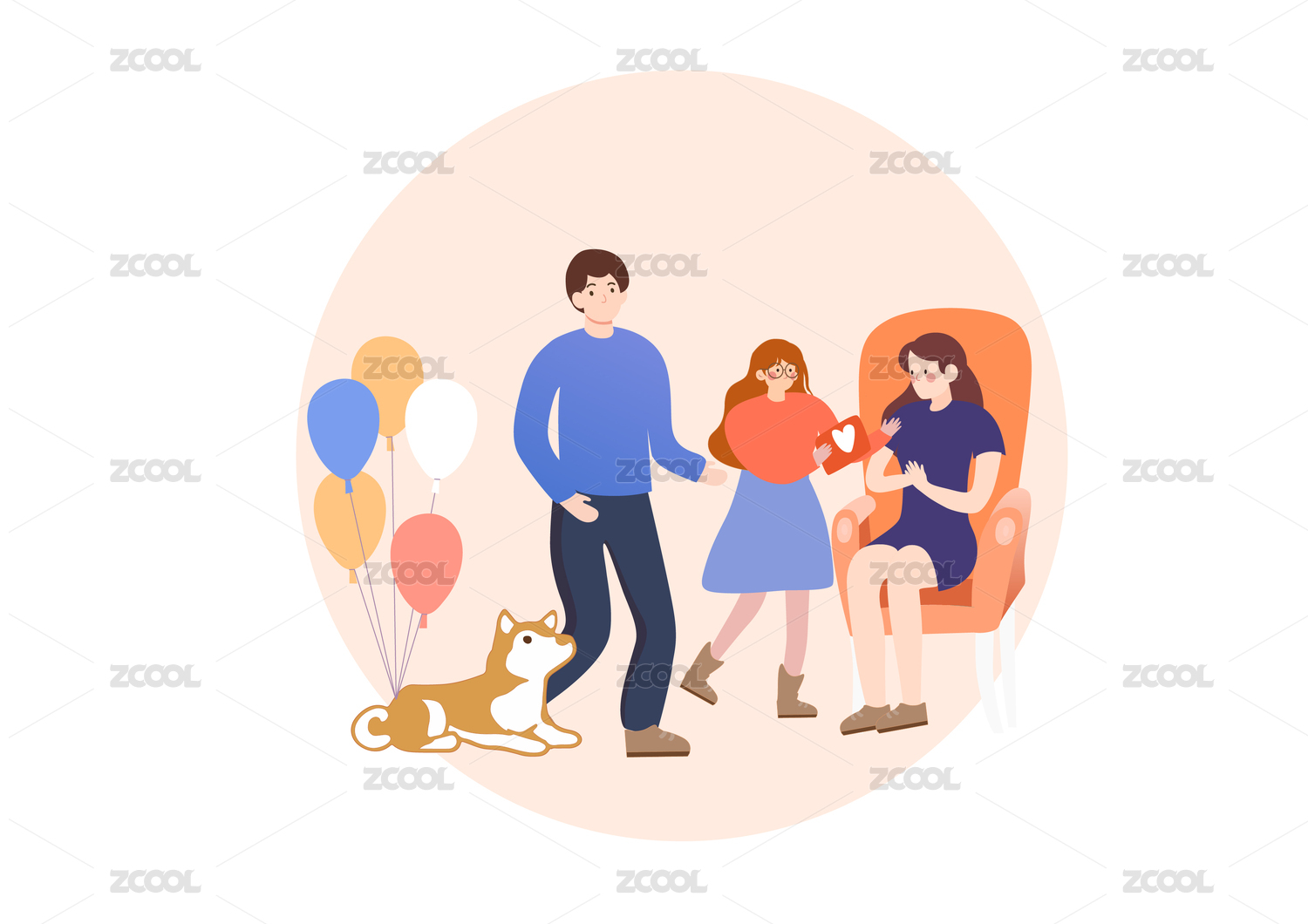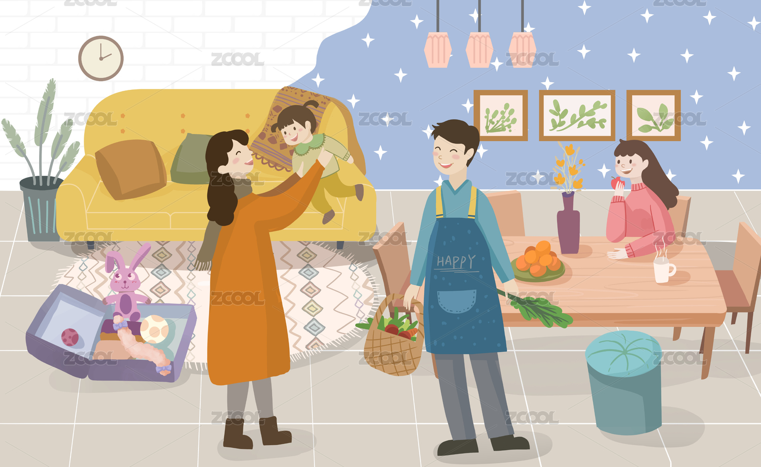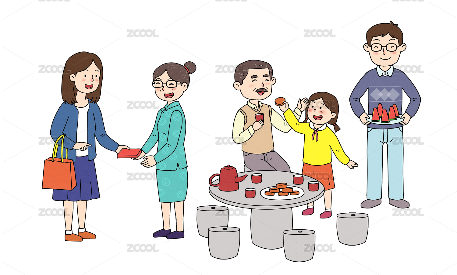 節(jié)日家庭聚會(huì)卡通人物插畫(huà)