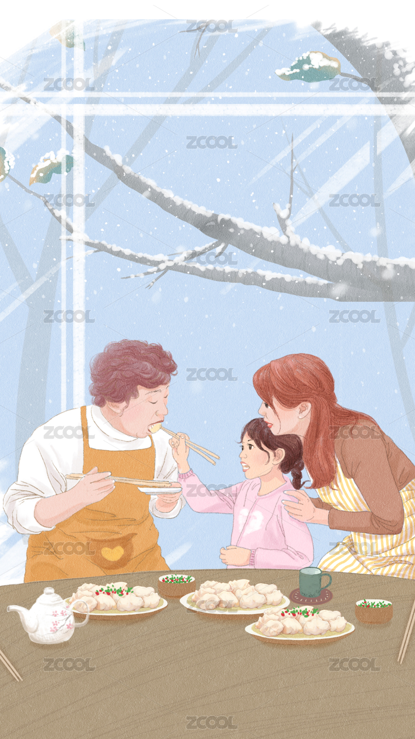 正月初六話(huà)家常春節(jié)家庭聚會(huì)年俗插畫(huà)