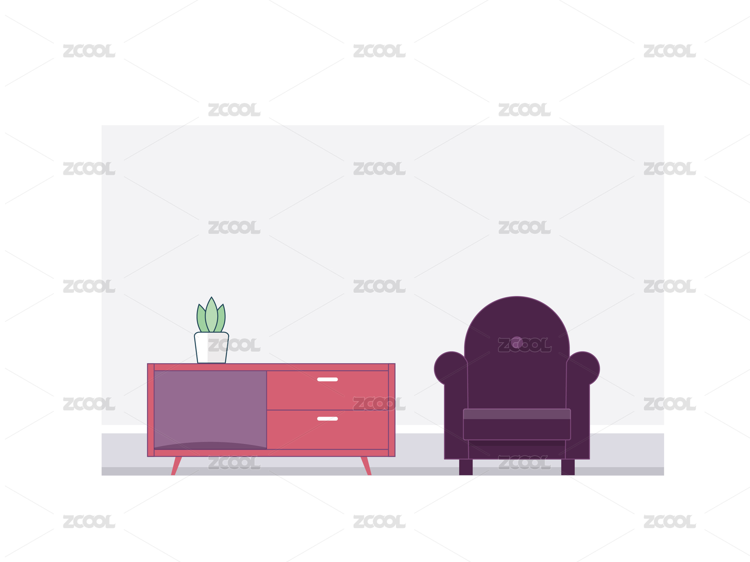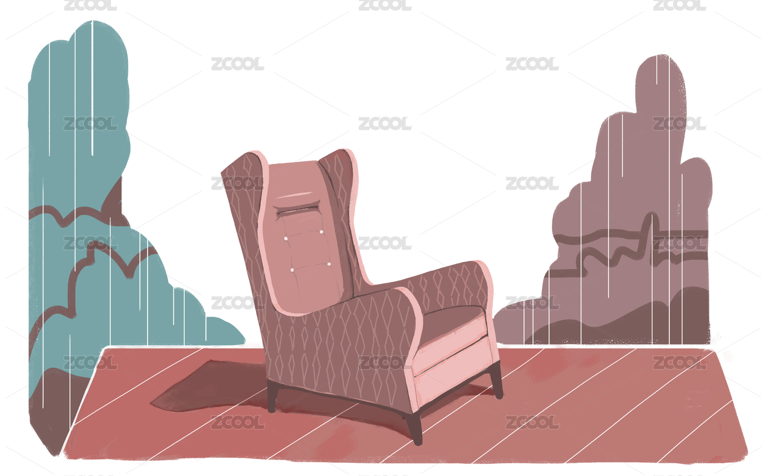 地毯上的單人沙發(fā) 裝飾風(fēng)格 手繪插畫