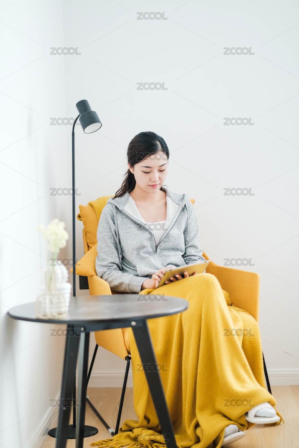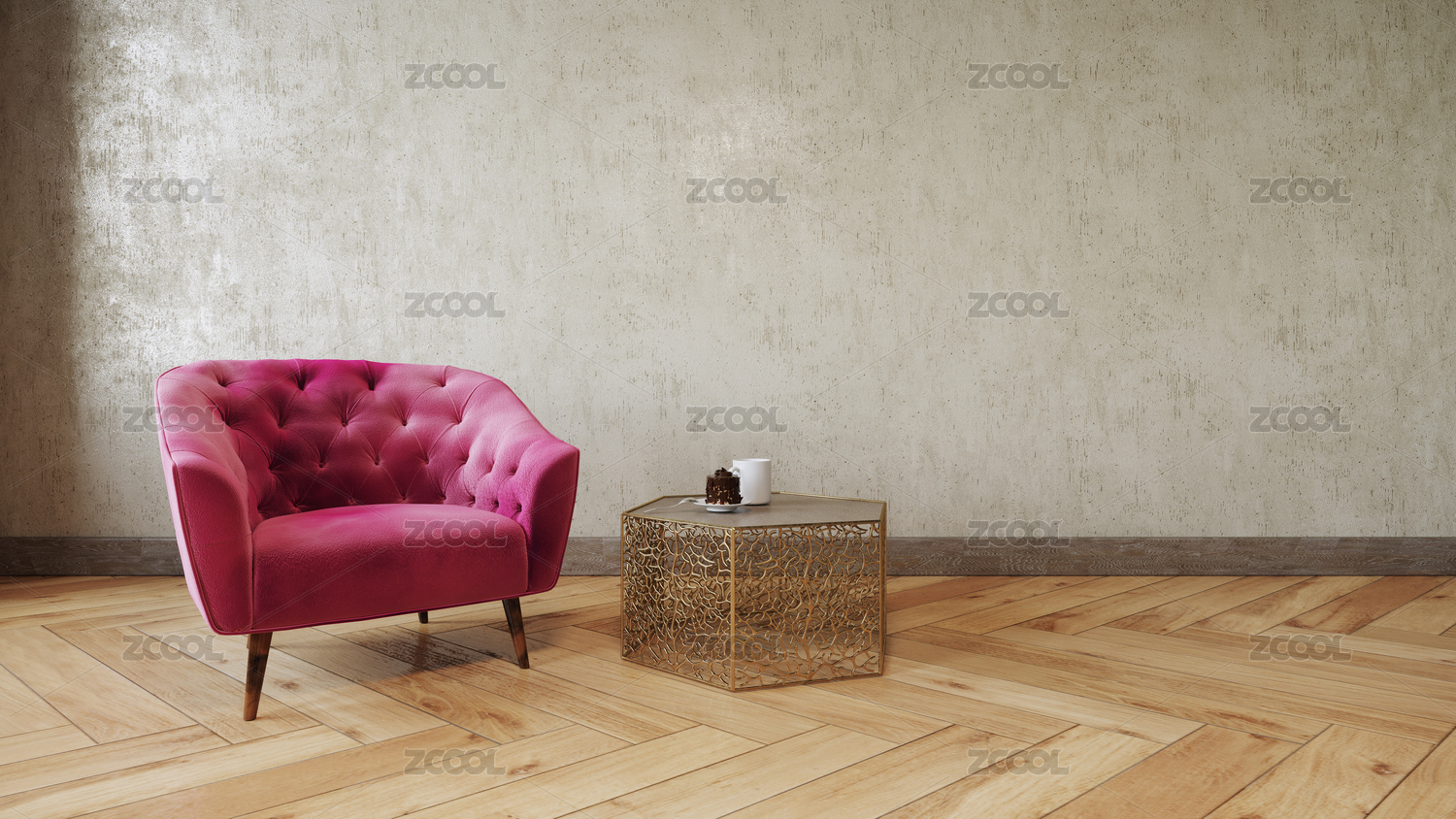 3d渲染客廳絨布單人沙發(fā)家居裝修圖