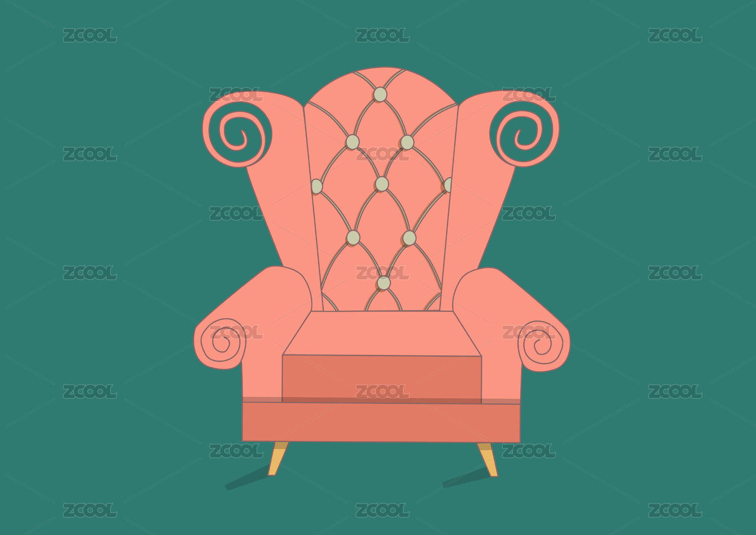 小清新風(fēng)格粉紅色的單人沙發(fā)插畫元素