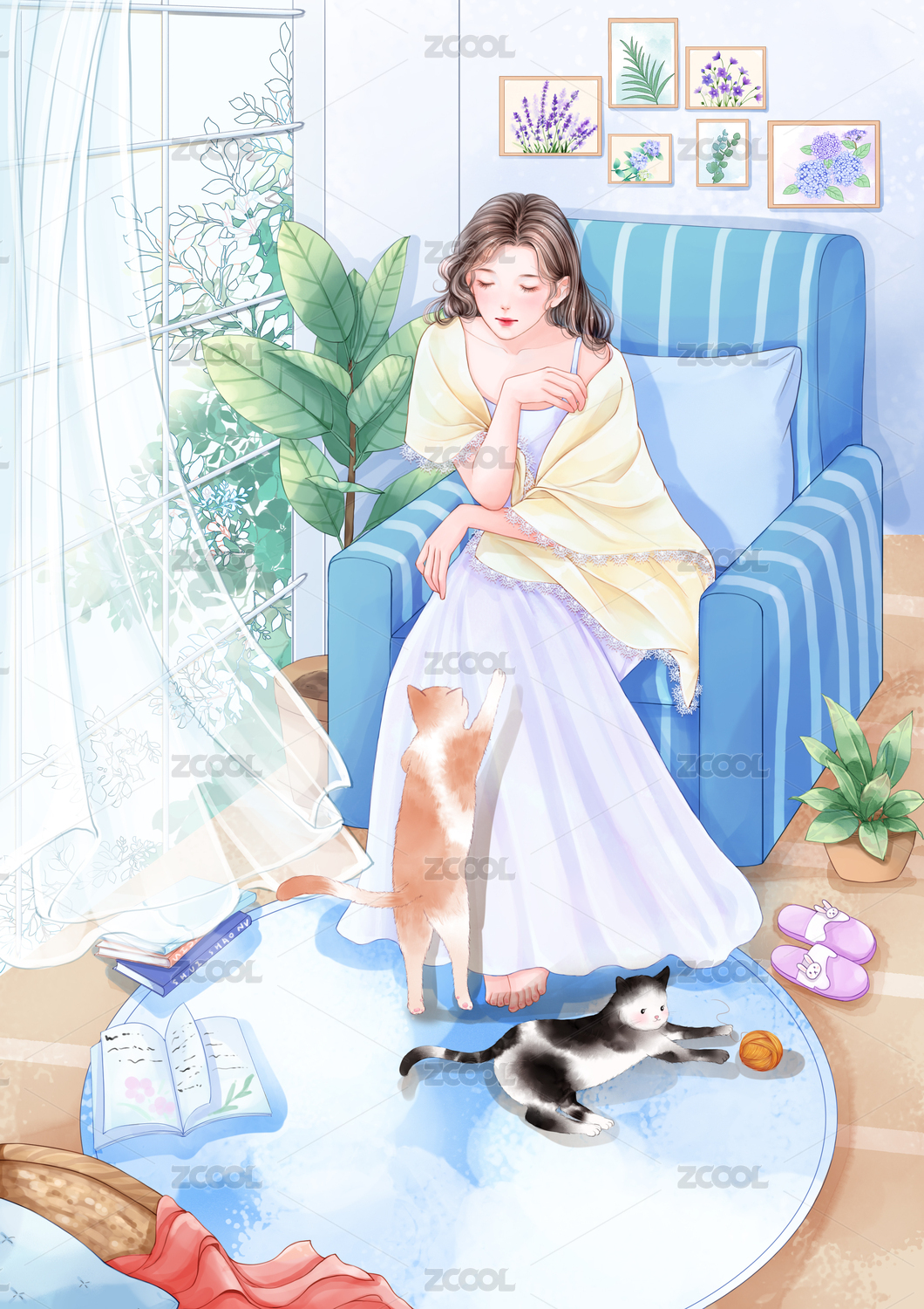 色塊風(fēng)格單人沙發(fā) 裝飾感手繪插畫