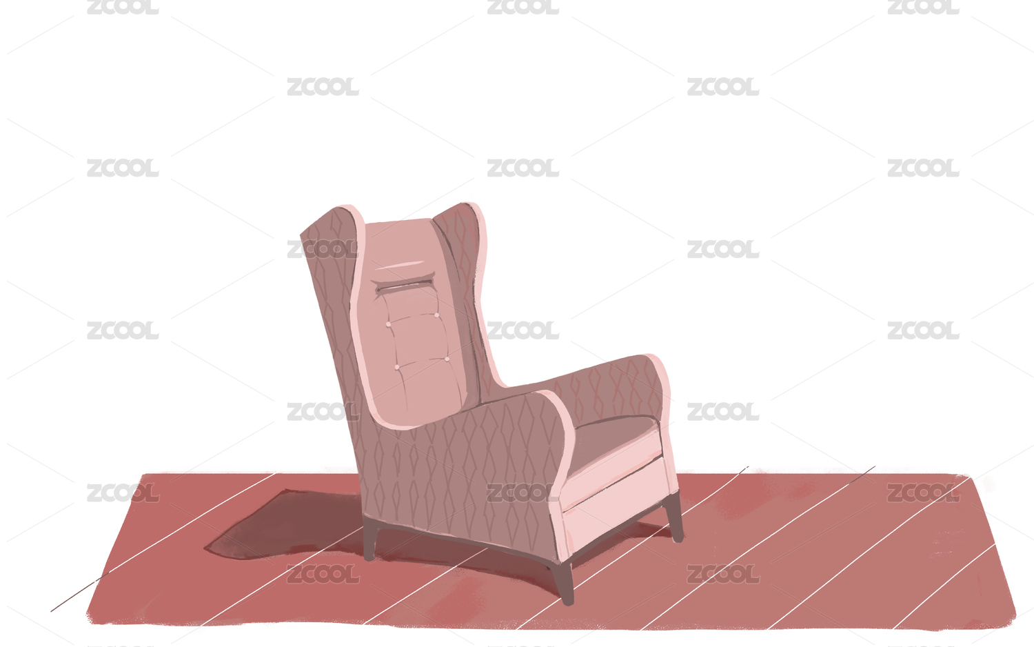 放在地毯上的單人沙發(fā) 裝飾風(fēng)格 手繪插畫