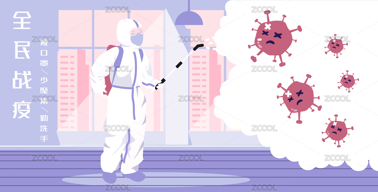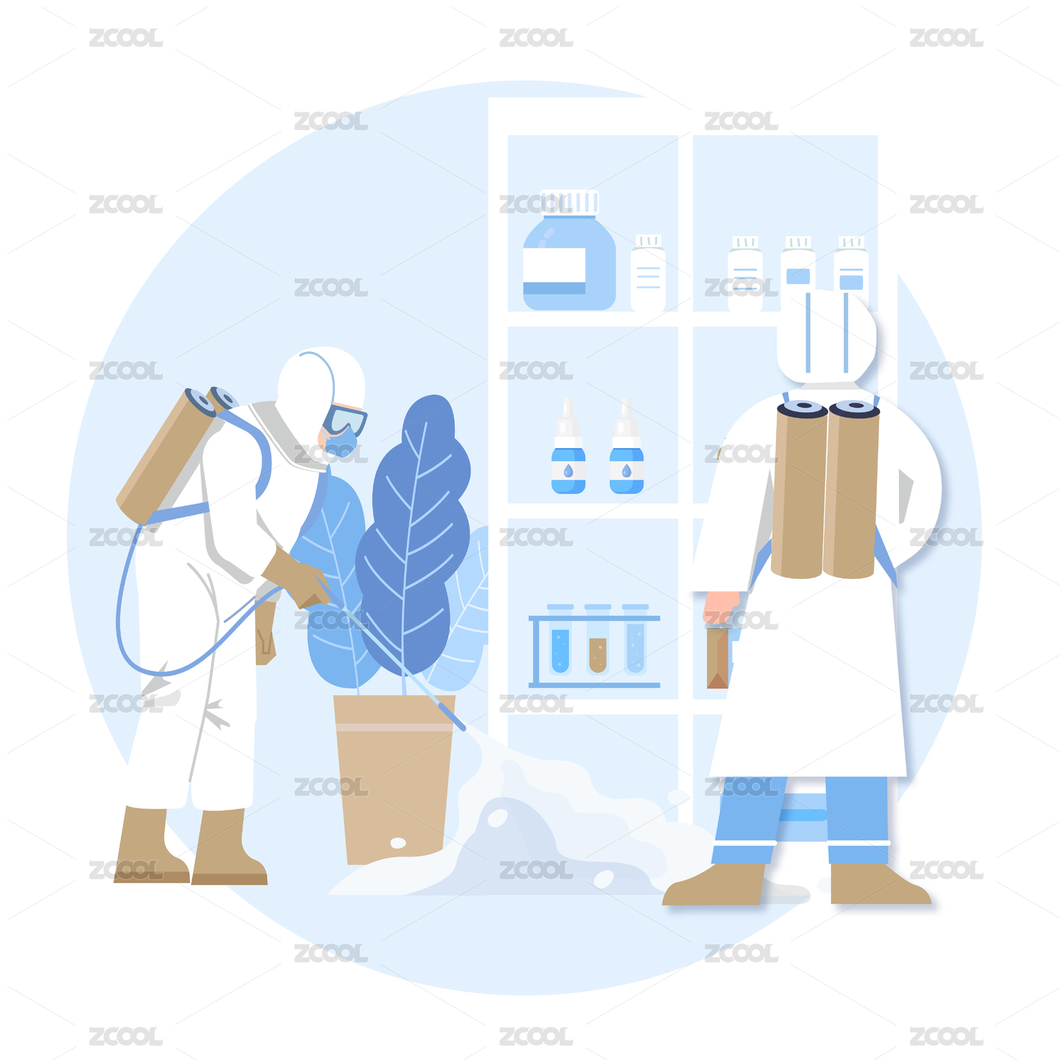 橫版防疫醫(yī)生室內消毒矢量插畫有字