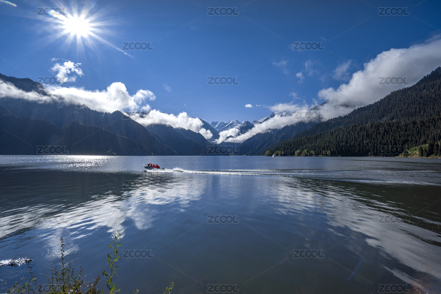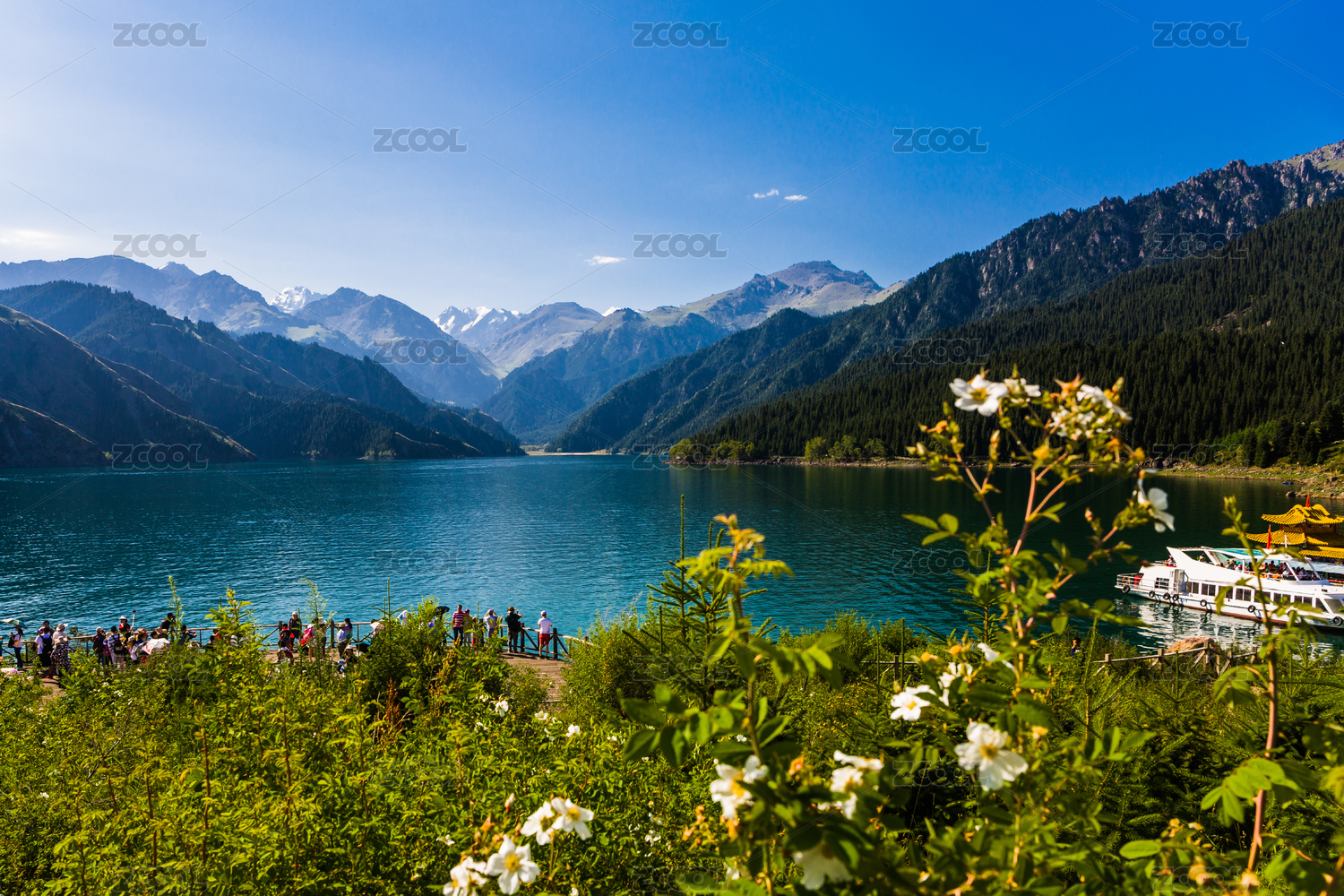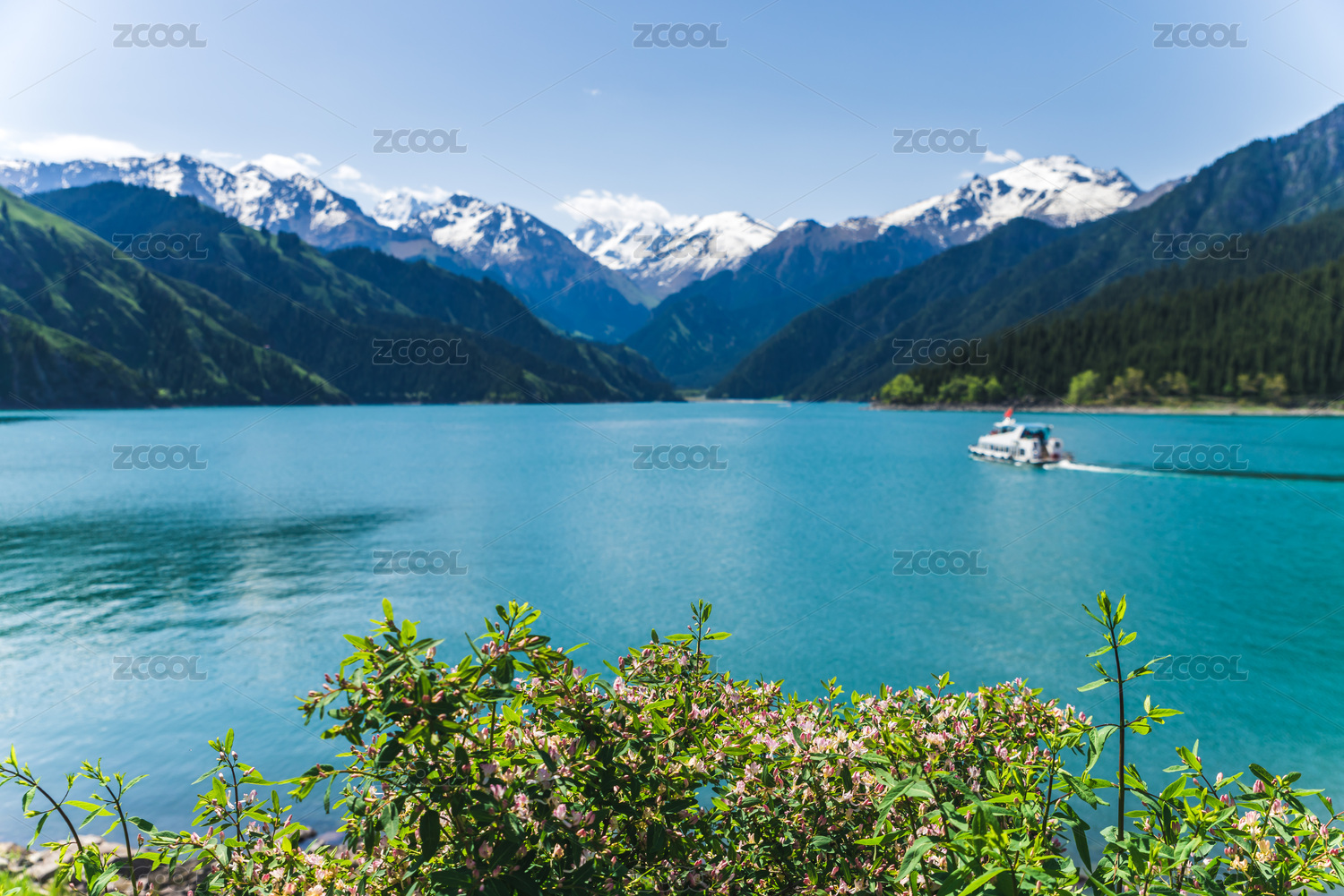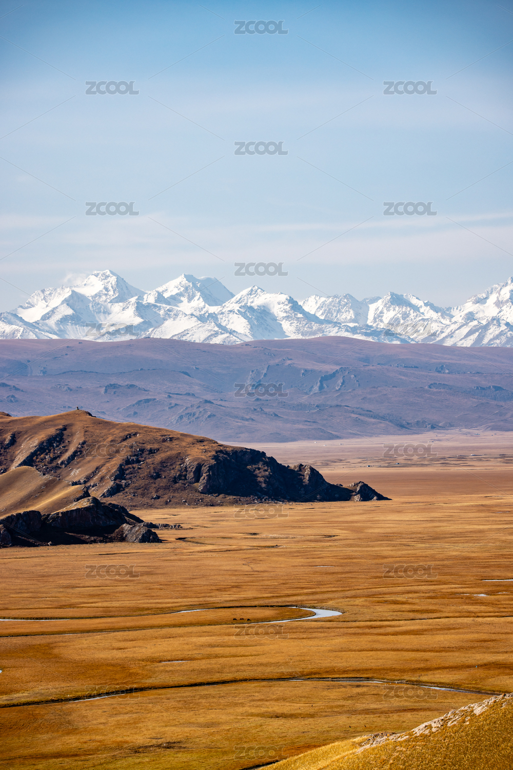 中國新疆博樂市賽里木湖畔天山山脈山麓景觀