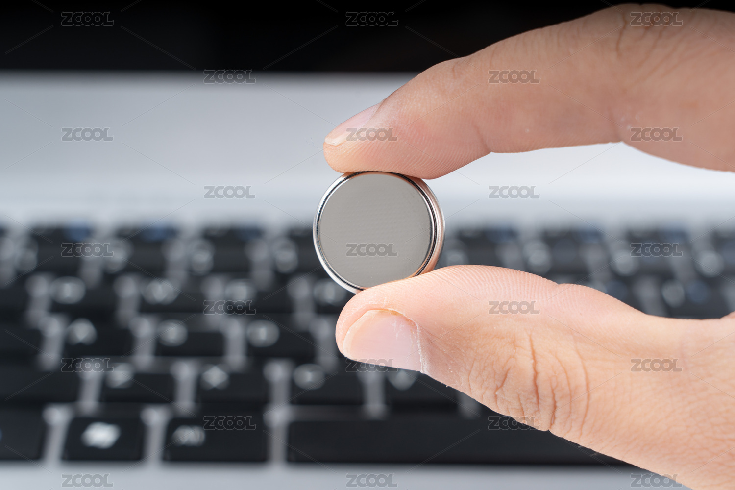 手拿紐扣電池特寫
