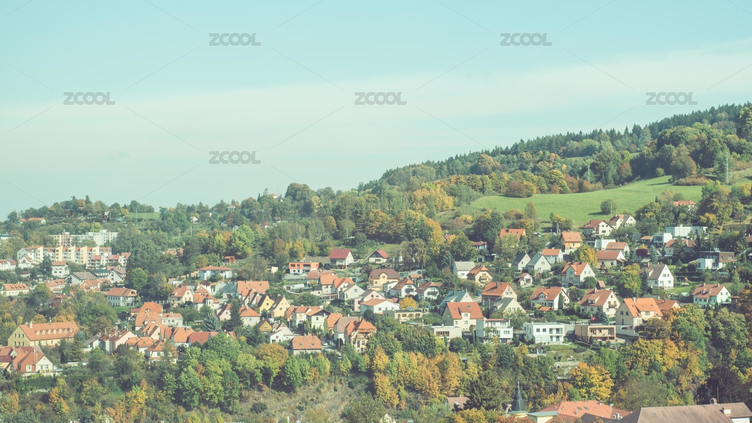 森林中童話風(fēng)格的歐洲小鎮(zhèn),美麗的紅色屋頂