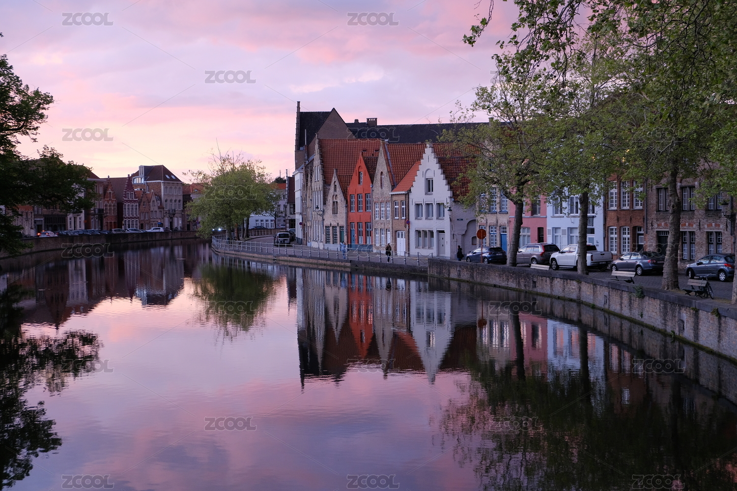 歐洲小鎮(zhèn)比利時布魯日愛之湖附近運河周邊房屋